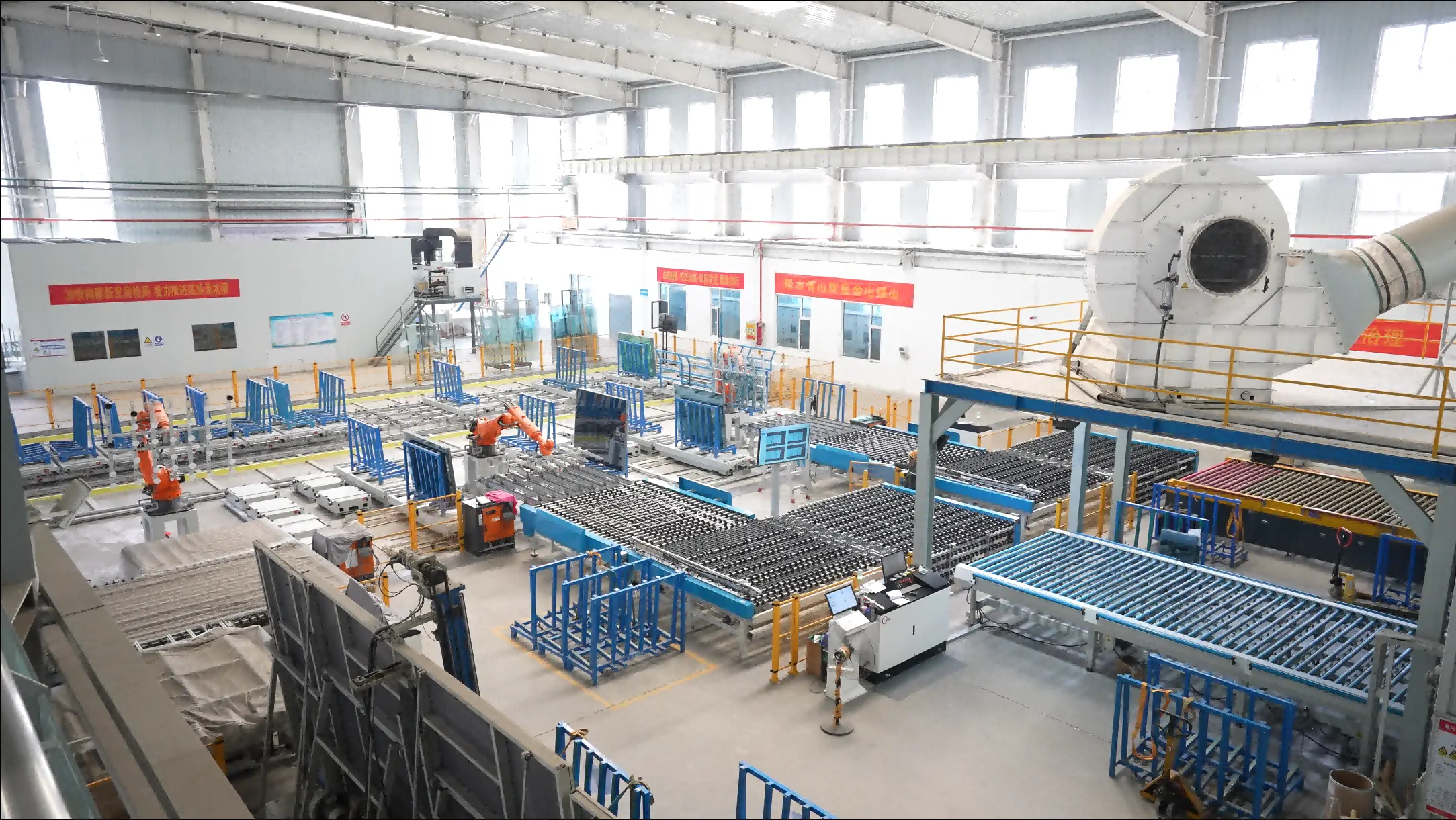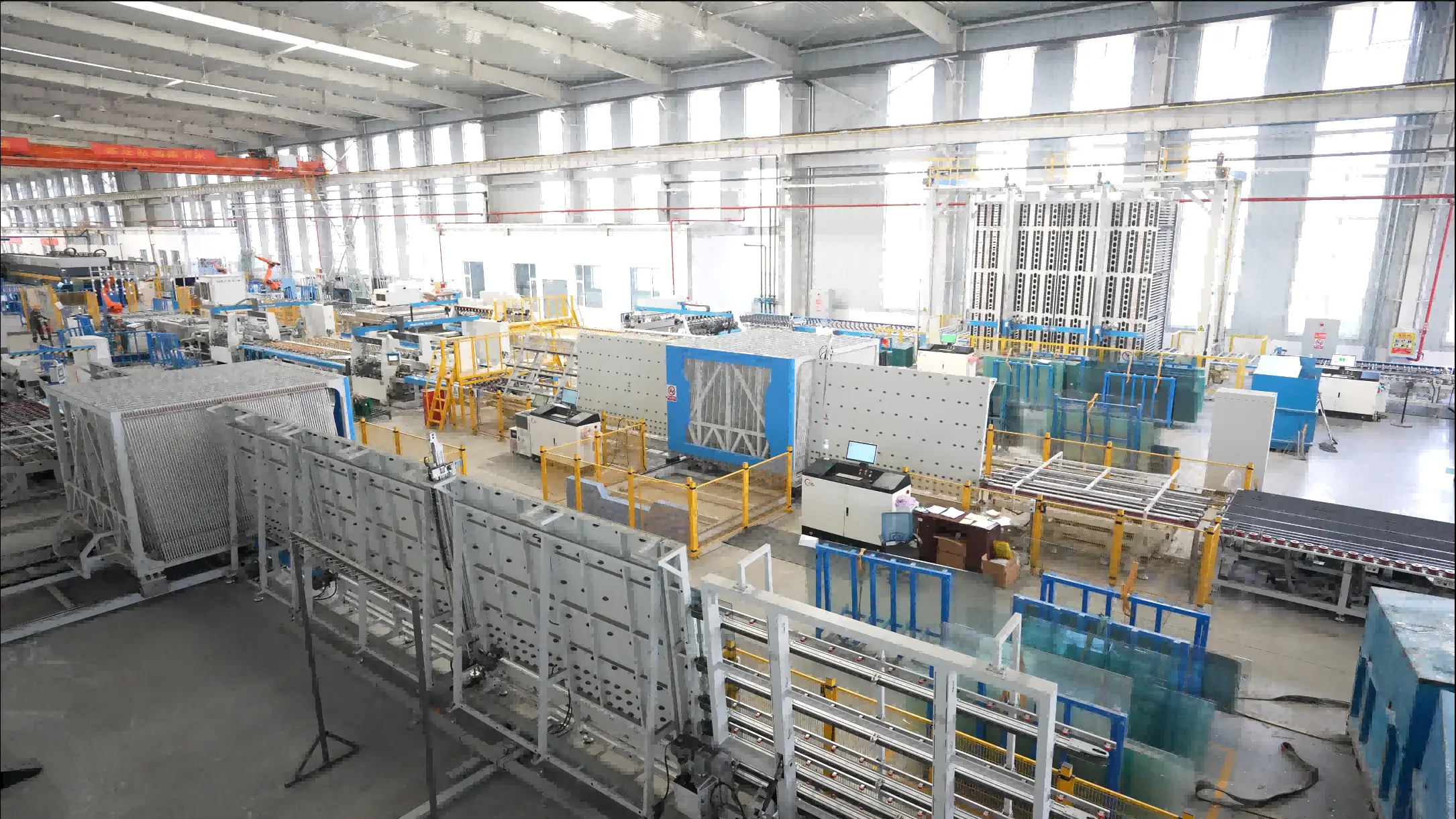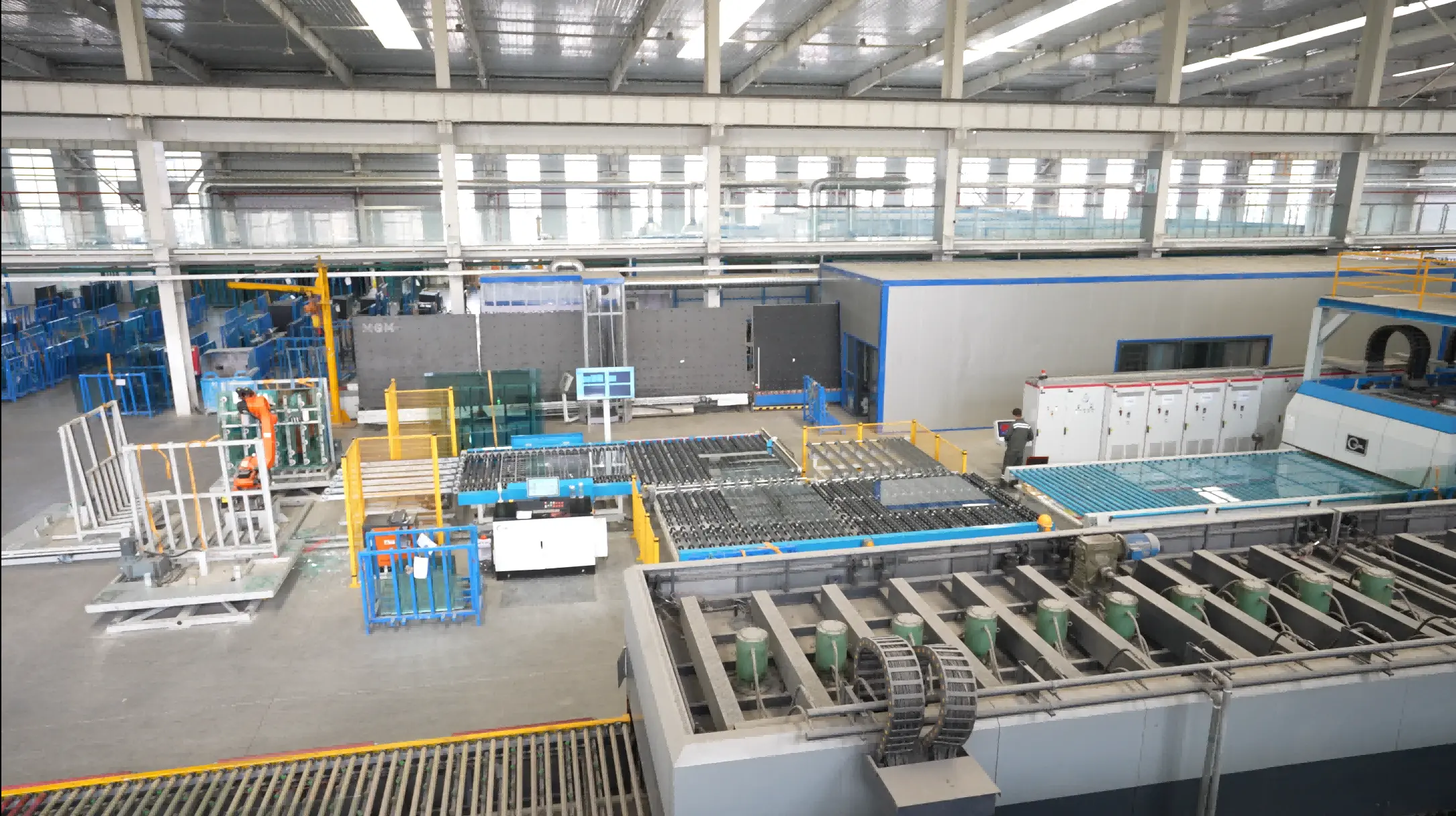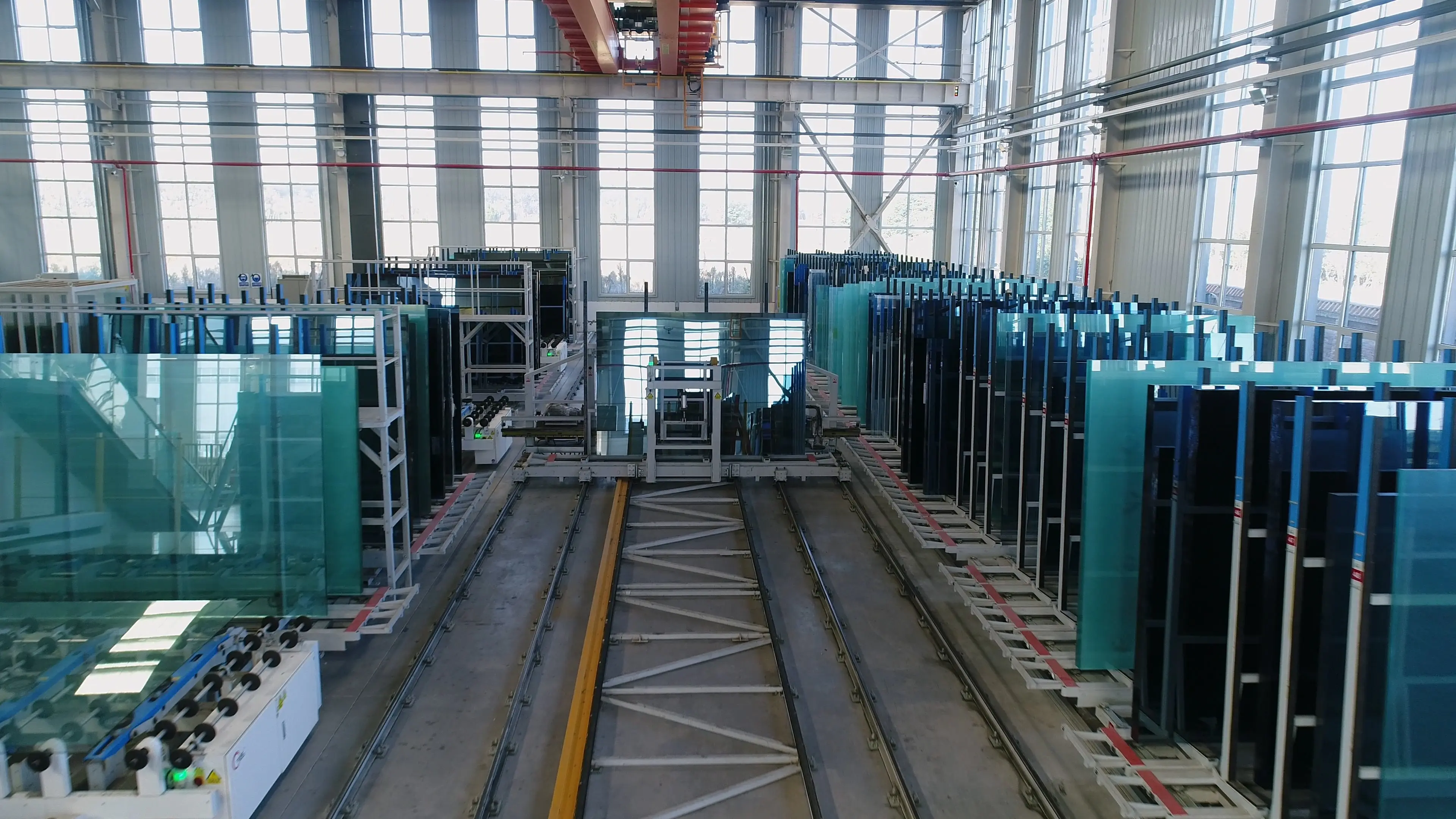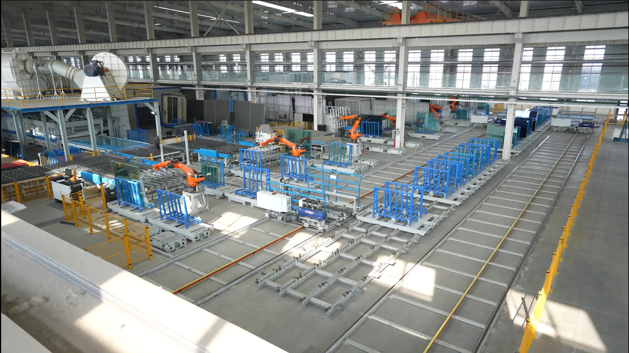 穿梭车式仓储+切割机+双边磨+清洗机+立式理片+钢化自动摆片+钢化炉+中空线+机器人下片系统