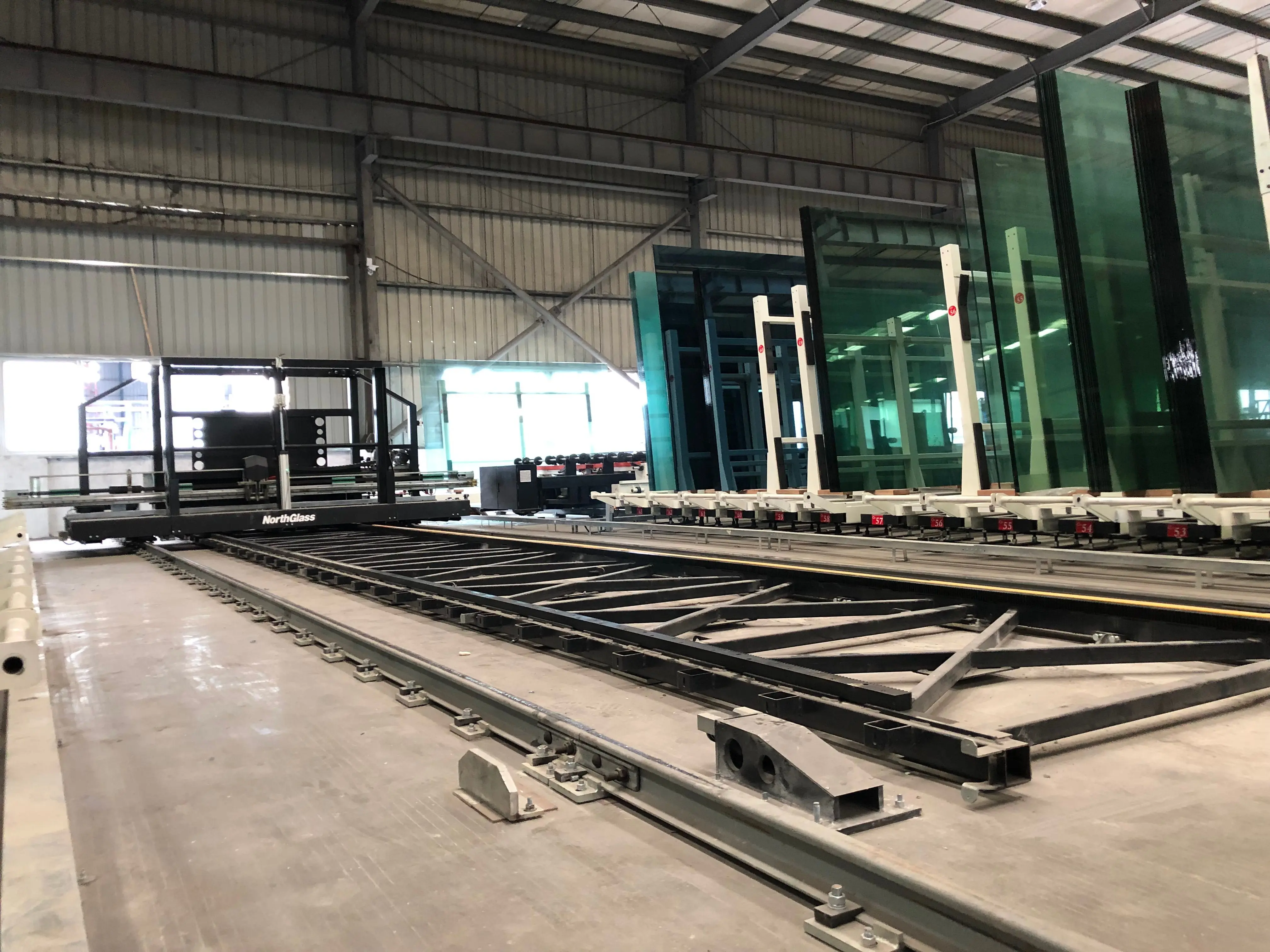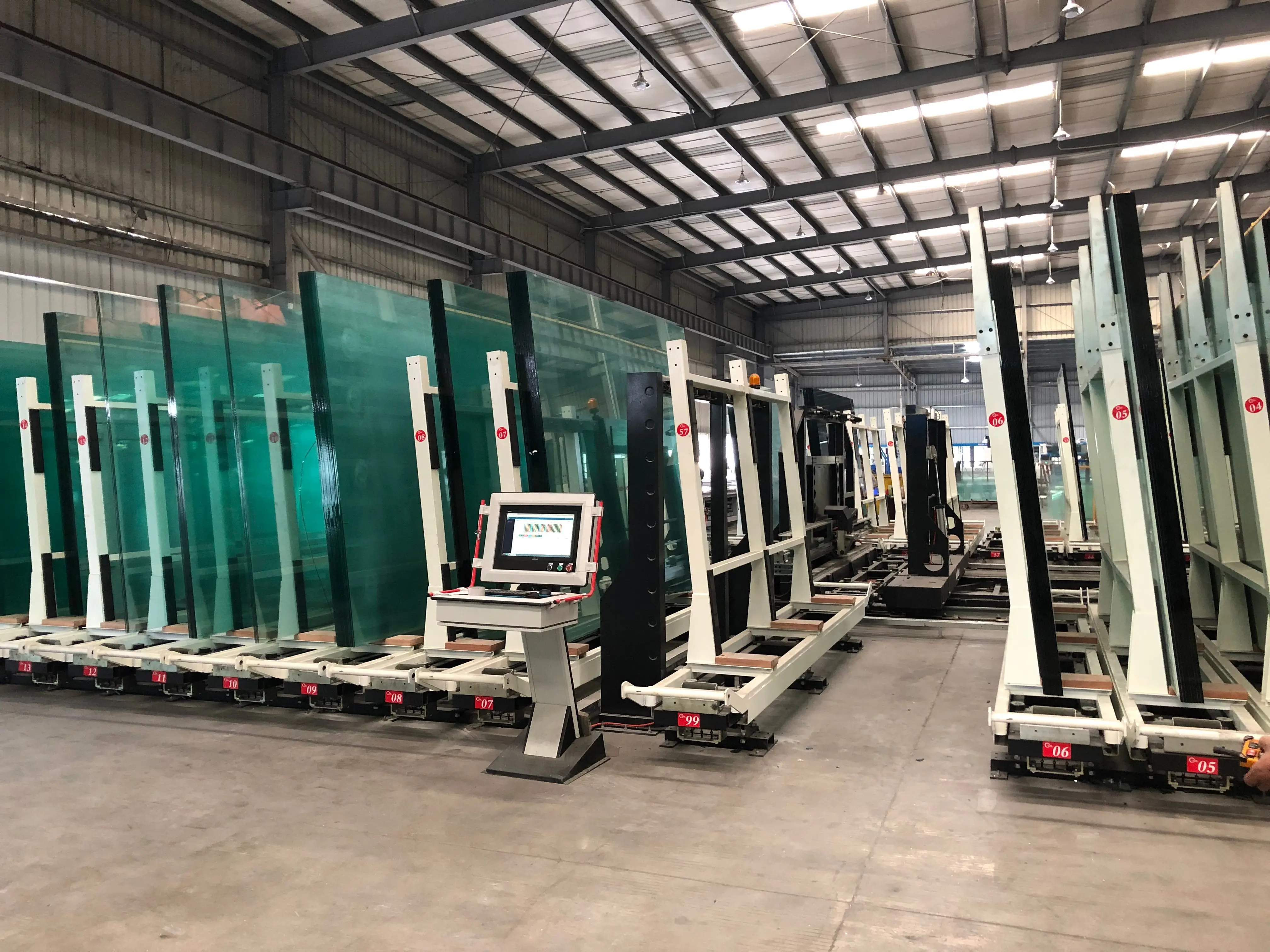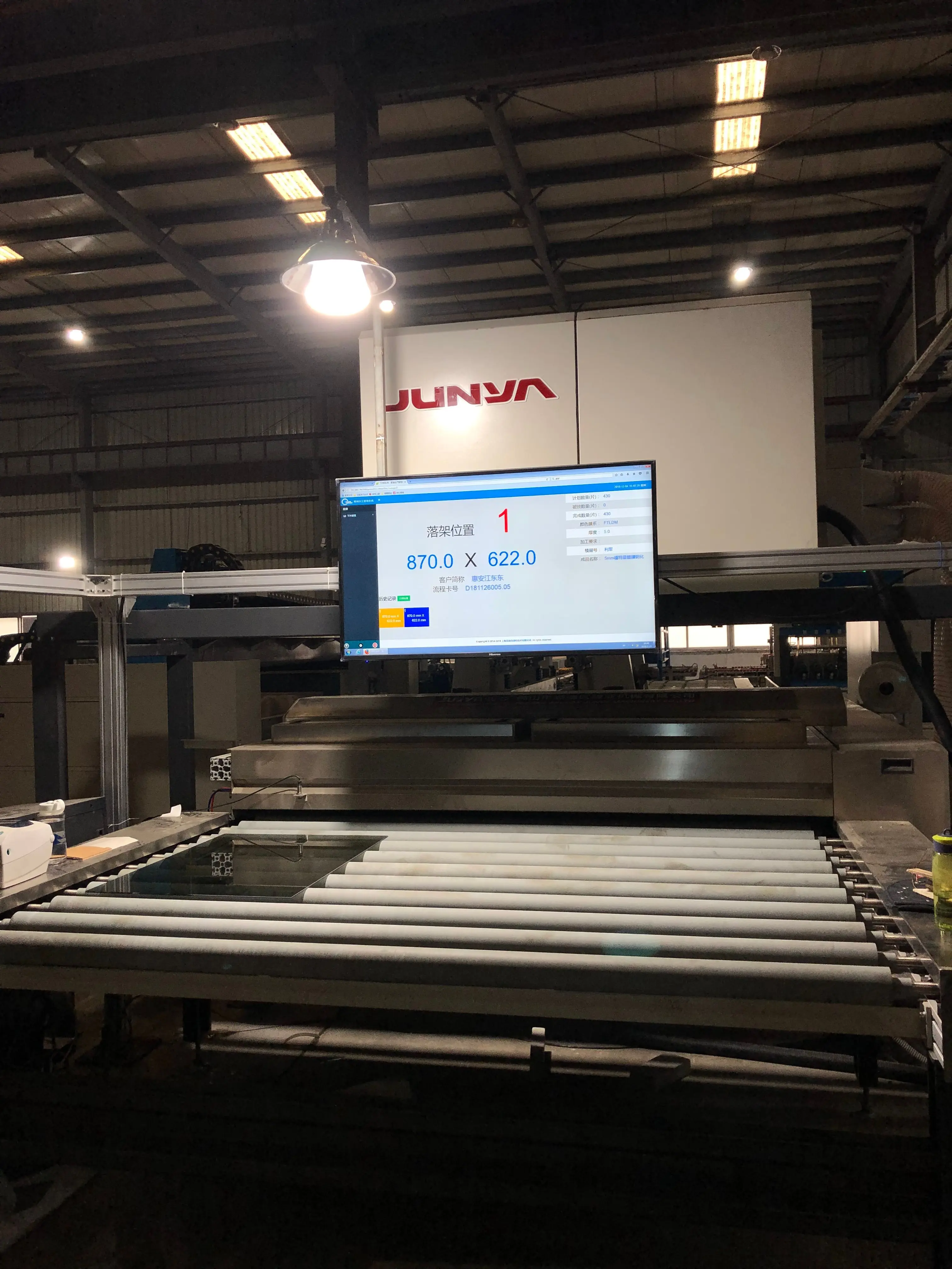 原片仓储+切割+磨边并连线+分片指示+落架指示