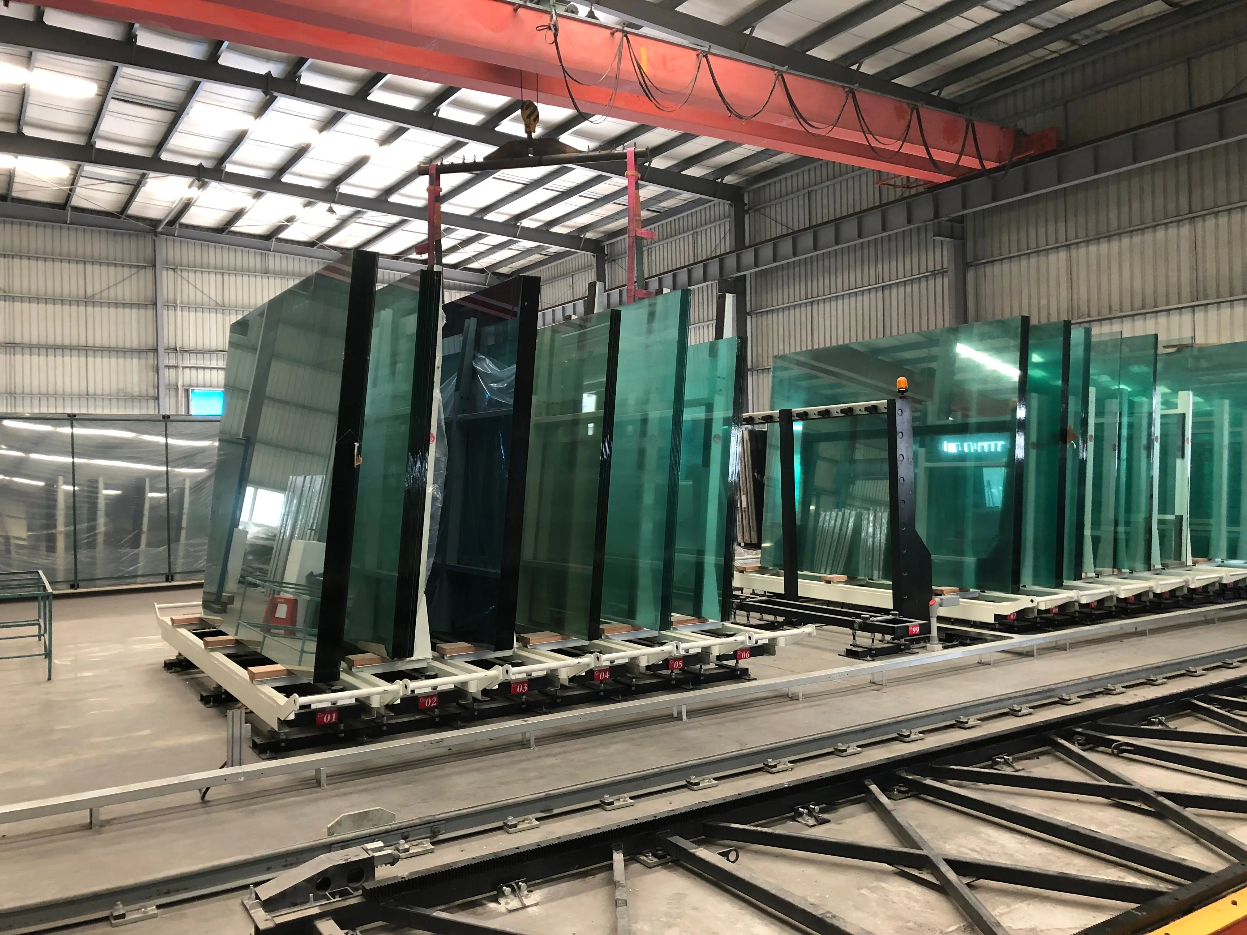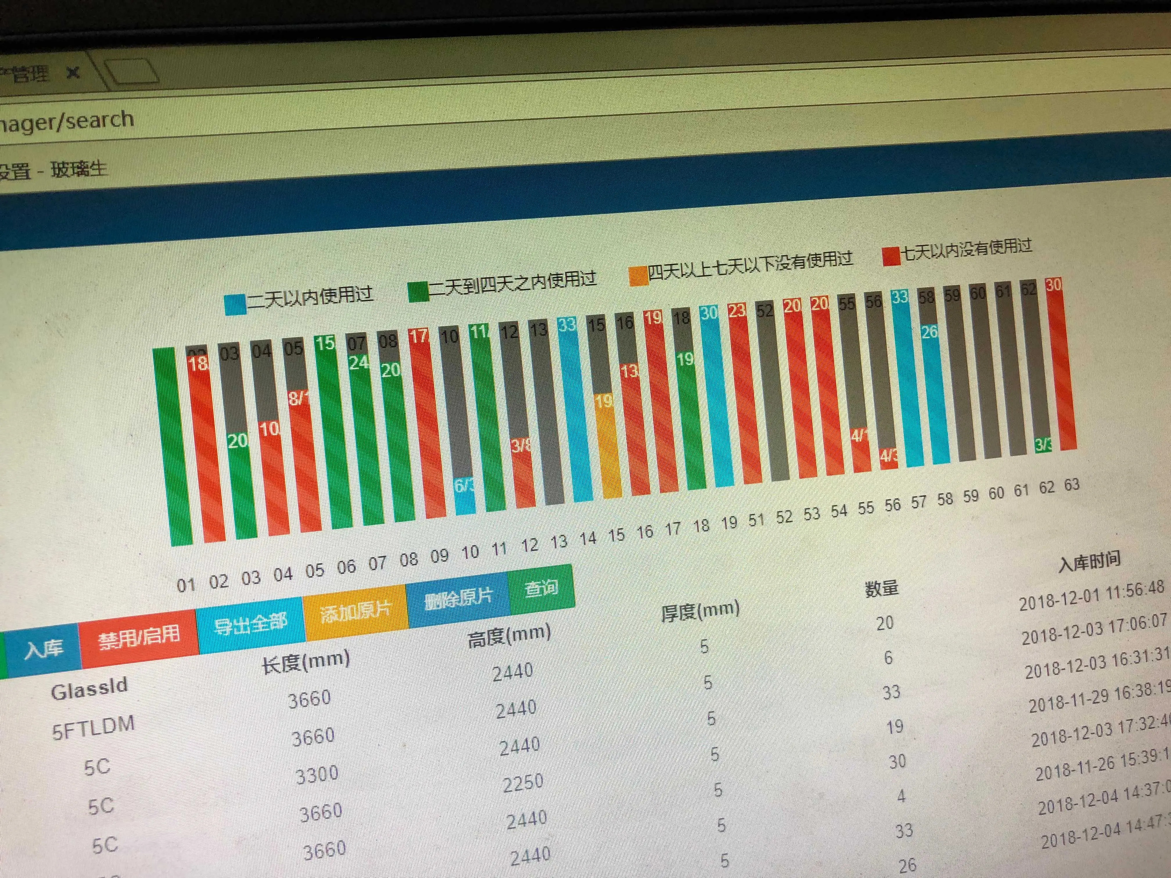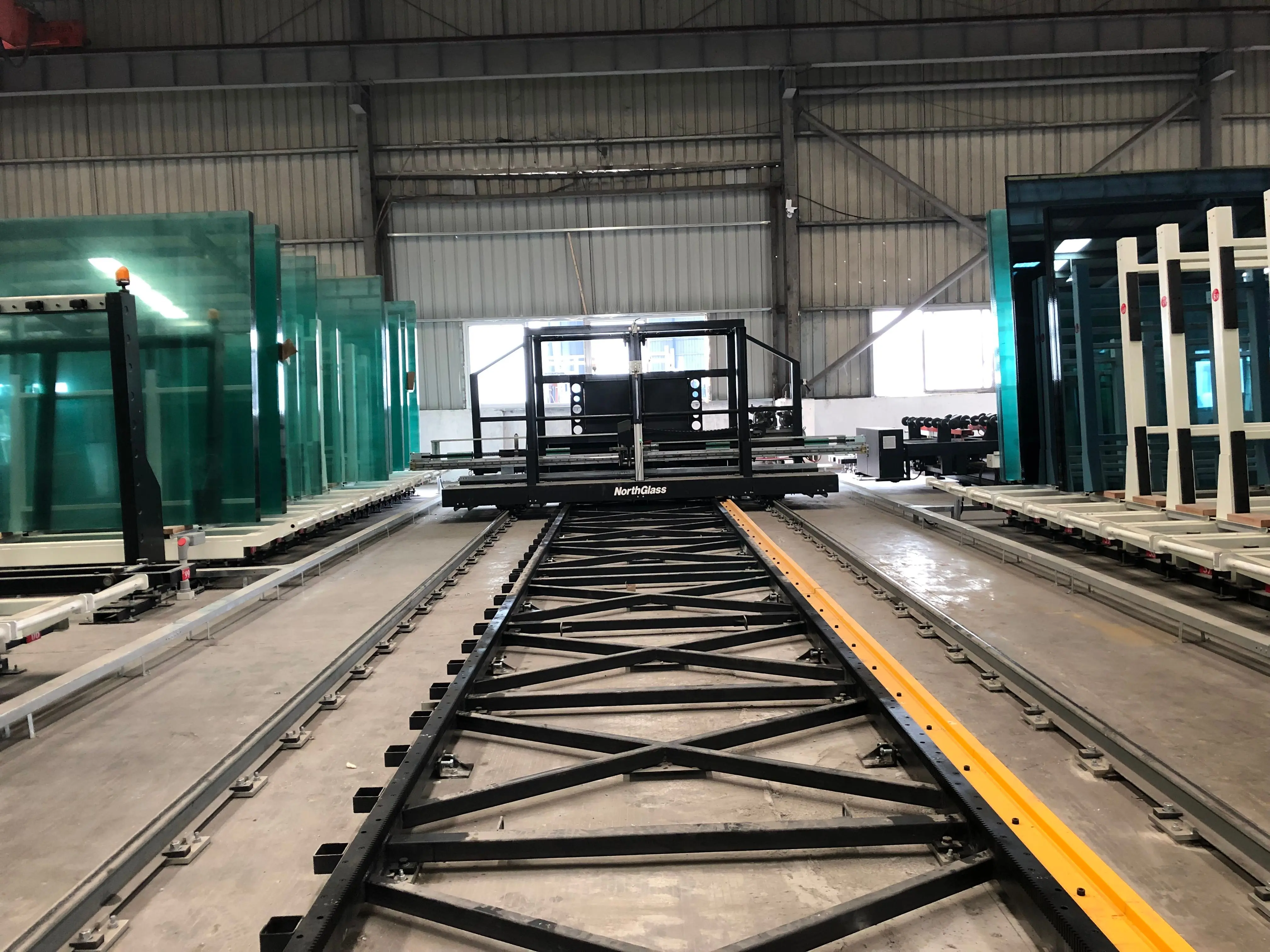 原片仓储+切割+磨边并连线+分片指示+落架指示