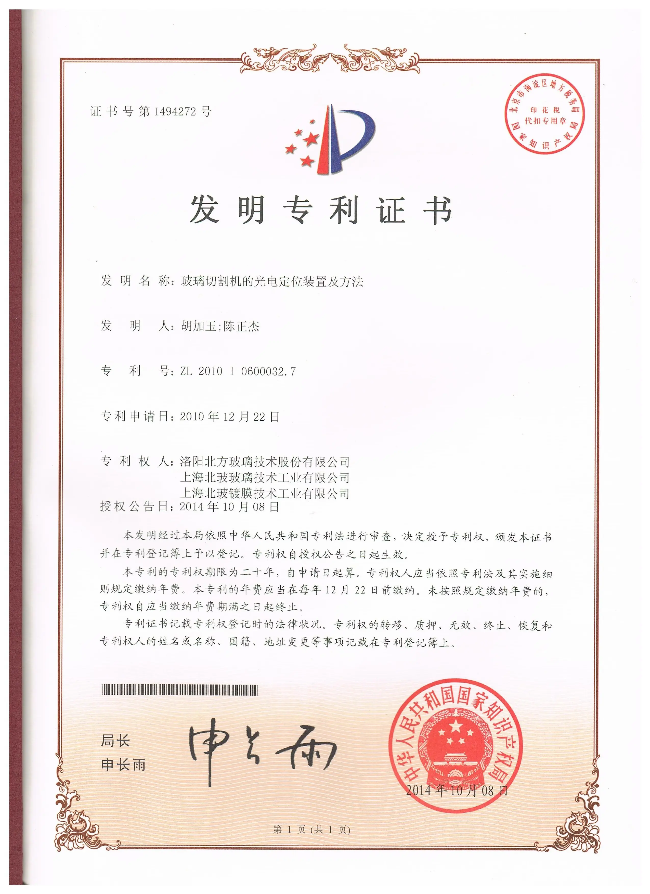 专利证书