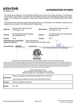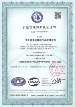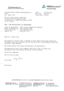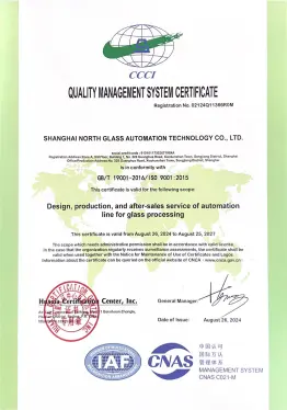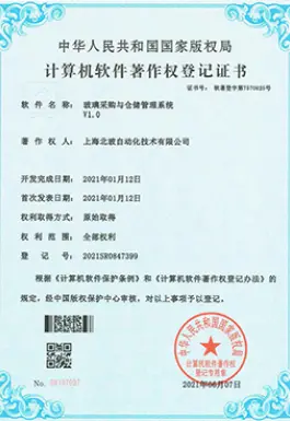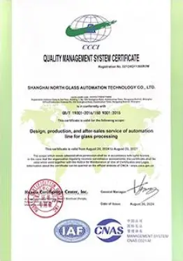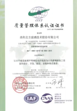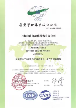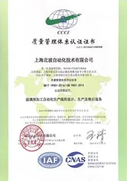 2002年已通过GB/T19001-2000/s09001-2000质量管理体系认证,目前通过GB/T19001-2016/1s09001-2015质量管理体系认证,符合国际标准的质量管理体系的有效运行, 是北玻设备在市场拥有良好口碑的基础和保证。2015年通过UL美华第三方认证,获得UL认证证书,2016年通过TUV莱茵公司认证,获得CE认证证书。相继通过全球技术要求最高的欧洲和北美的安全认证,能帮助北玻更加顺利地开拓和扩大在全球各地的销售业绩。
