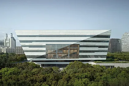 上海图书馆东馆——一座漂浮在公园树冠上方的雕塑体
