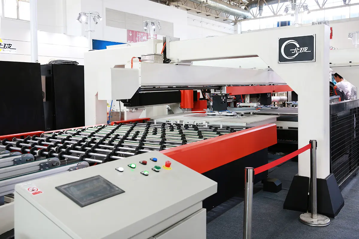 同时,北玻还精选了自动上片、切割、掰边、磨边、打孔的全自动化异形玻璃切掰磨生产线,拥有高精度的磨边和钻孔效果,该设备适用于异形产业玻璃的自动化生产。