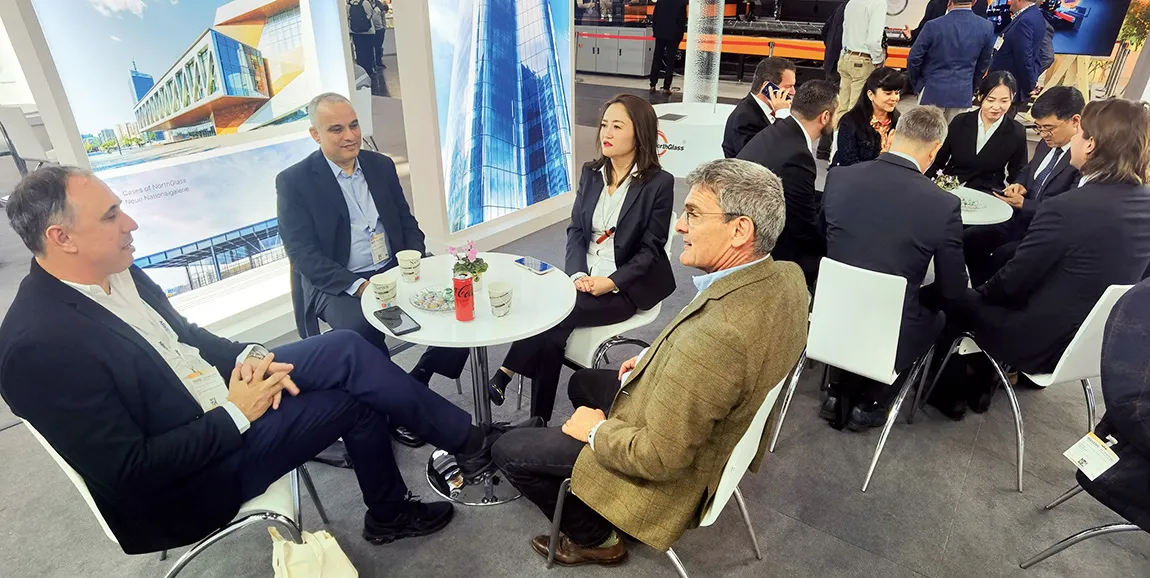 本次展会,北玻股份派出钢化设备事业部、天津北玻以及代理商共计30多人组成了庞大的代表团。展会期间,北玻将展示四块大小各异的3D多曲镜面玻璃,175mm超小半径彩釉钢化玻璃,3.3m超大半圆弧长夹胶中空钢化玻璃等新的北玻玻璃深加工产品;同时还带来了第四代高端系列钢化炉、镀膜线、仓储预处理连线等北玻玻璃深加工设备的技术成果。