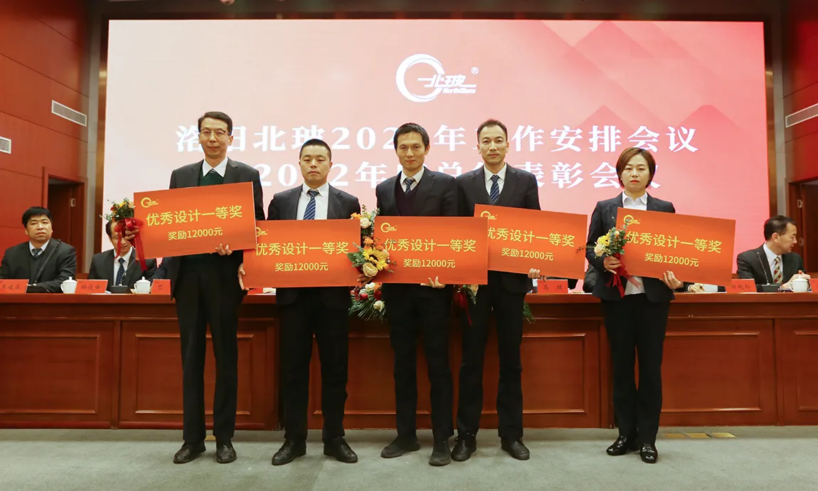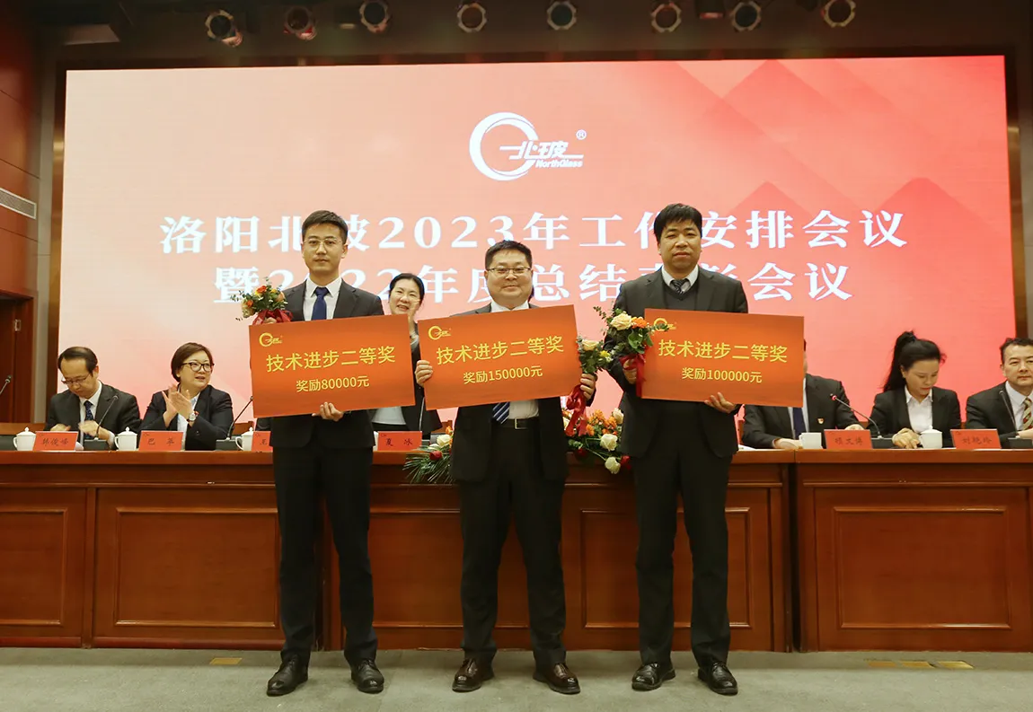 接下来,北玻股份对过去一年所取得的技术进步、先进集体、先进员工代表进行表彰和奖励。钢化公司和洛阳玻璃事业部获得2022年度“目标完成和业绩增长先进单位”,总裁高理、总经理李俊峰分别代表钢化设备和洛阳玻璃事业部上台领奖。“北玻精神奖”、“先进集体”、“先进员工”等也依次登台接受表彰。“全新标准系列优化设计”、“三元流通风机气动模型设计编程”、“新人机界面上位机程序”、“澳大利亚布里斯班新艺术展览中心产品研发”获得技术进步二等奖,技术类奖项共计100多项。