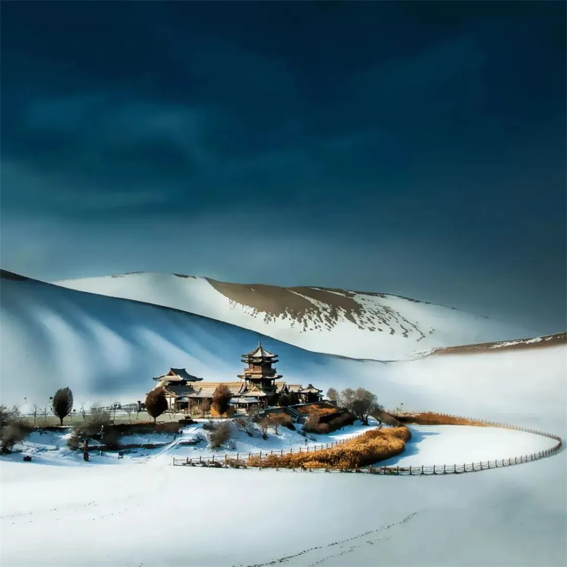 作品介绍:敦煌难得下雪,有幸在现场用手中的相机记录了这沙雪共存的奇景。该建筑组群由我公