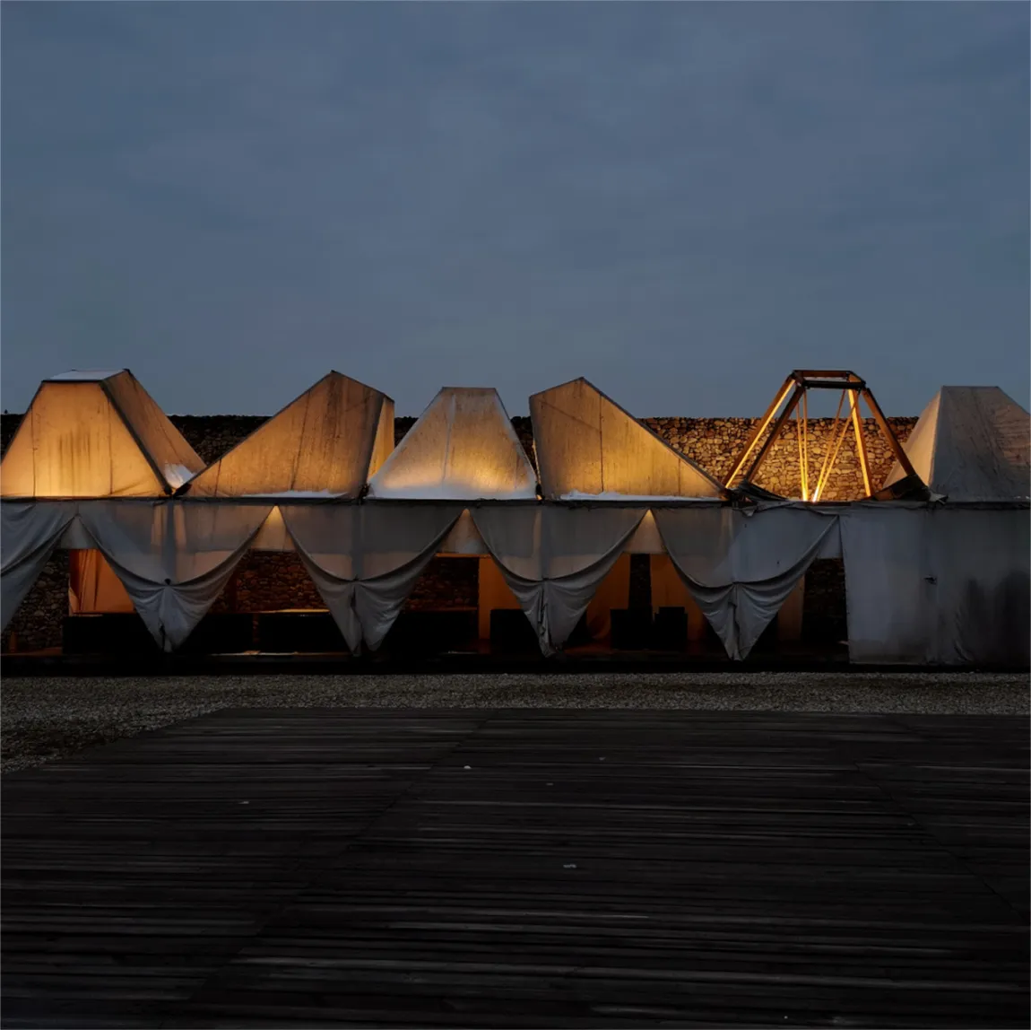 作品介绍:蓝田井宇山脚下,连续的木构架与散发着暖晕的帆布建构的长廊,在冬天雪地里予人以慰藉。”此情可待成追忆,只是当时已惘然。“