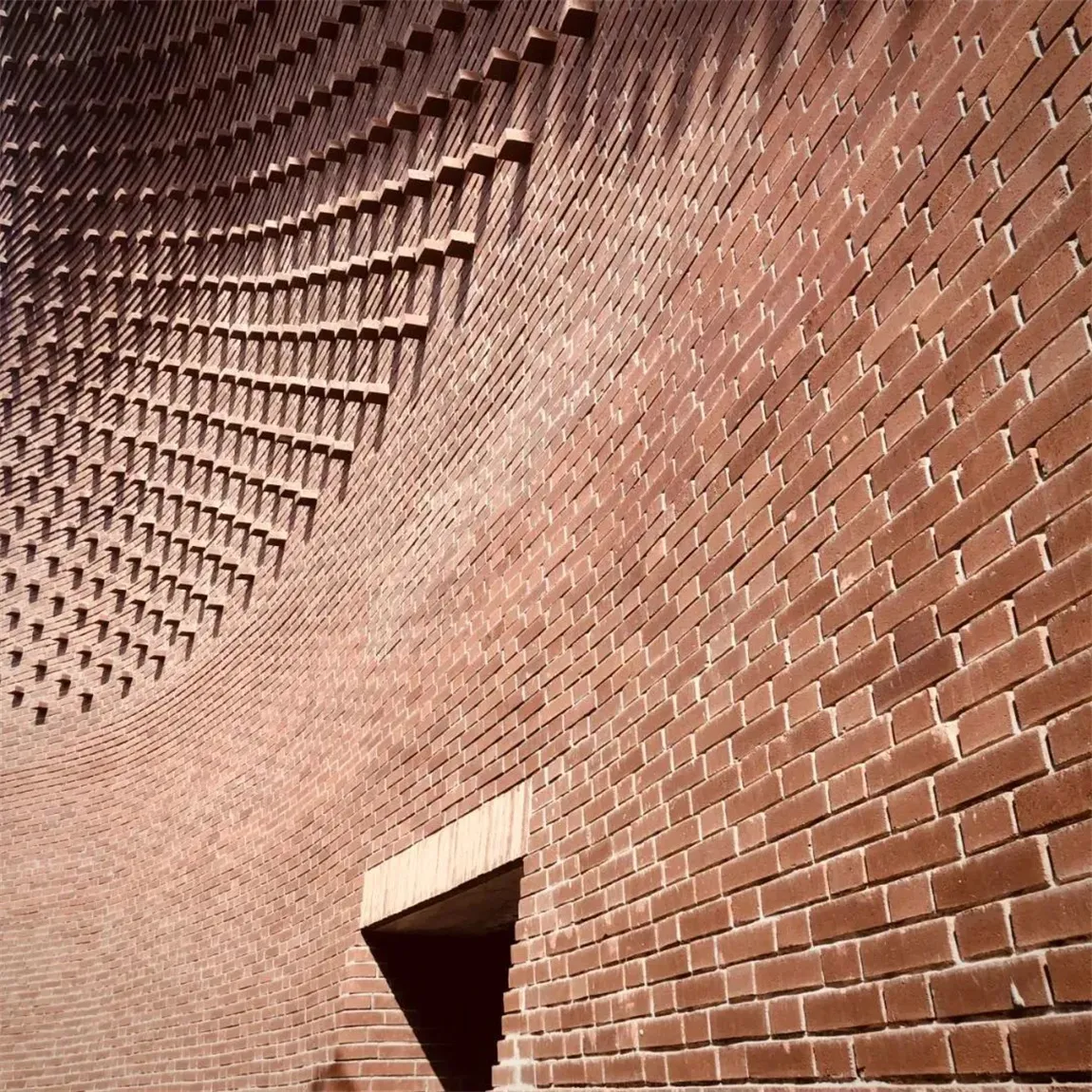 作品介绍:红砖砌成的弧墙在凹凸与平整之间形成优美的形态与曲线,体现着材料的力量,引导着人们探寻建筑其中的秘密。