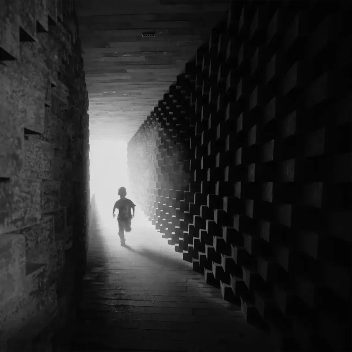 作品介绍:照片摄于广东高明的「对川问茶」茶博馆内。茶博馆原身是建于1958年的对川茶厂,在改造后焕发了新生机。凹凸有致的火山石走廊,光影交错。恰时拍下小跑而来的小孩,为建筑空间感增添一份活力。
