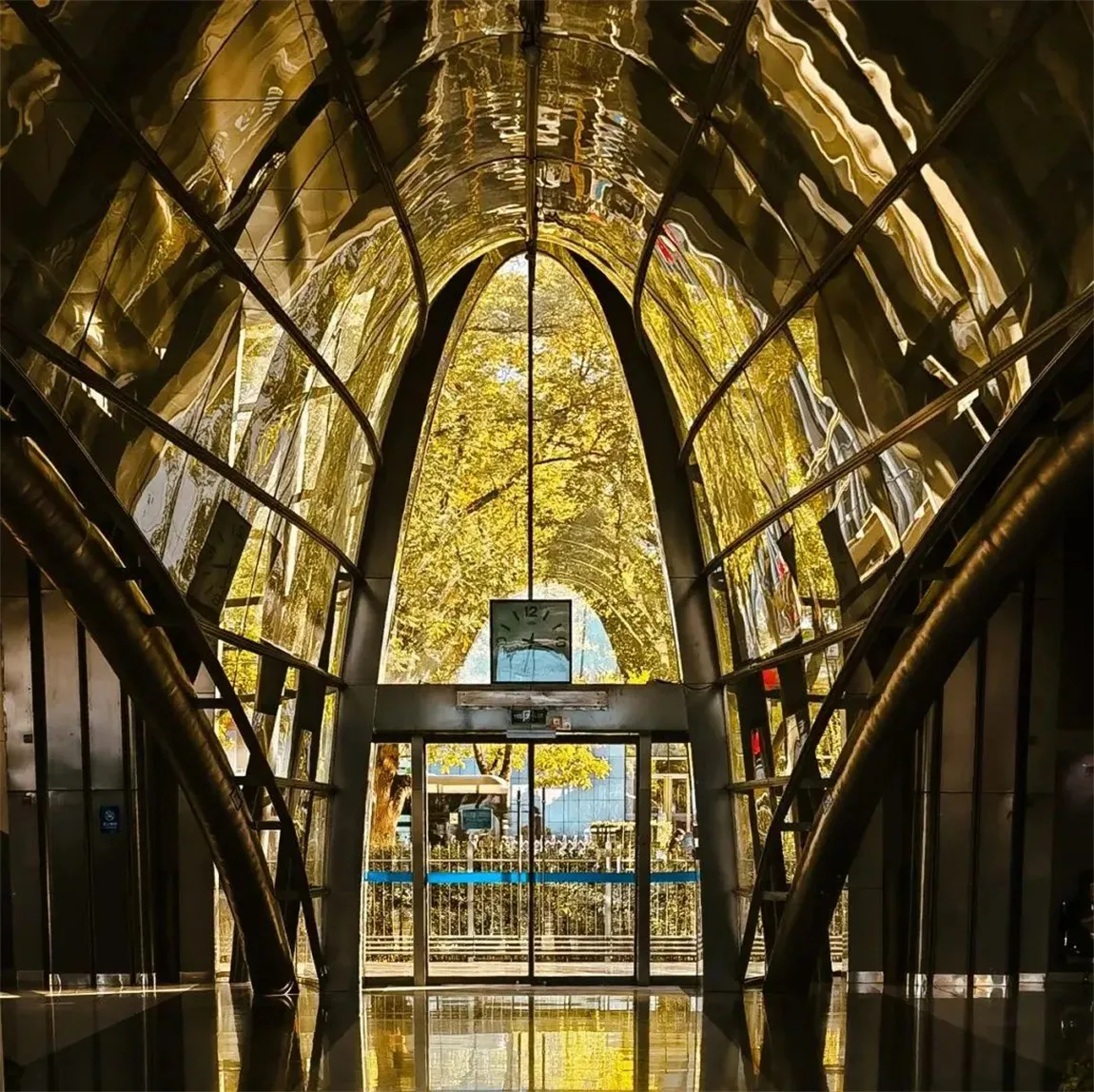 作品介绍:北京天文馆新馆,曲面幕墙映射下的深秋,展现出一种迷幻的色彩……