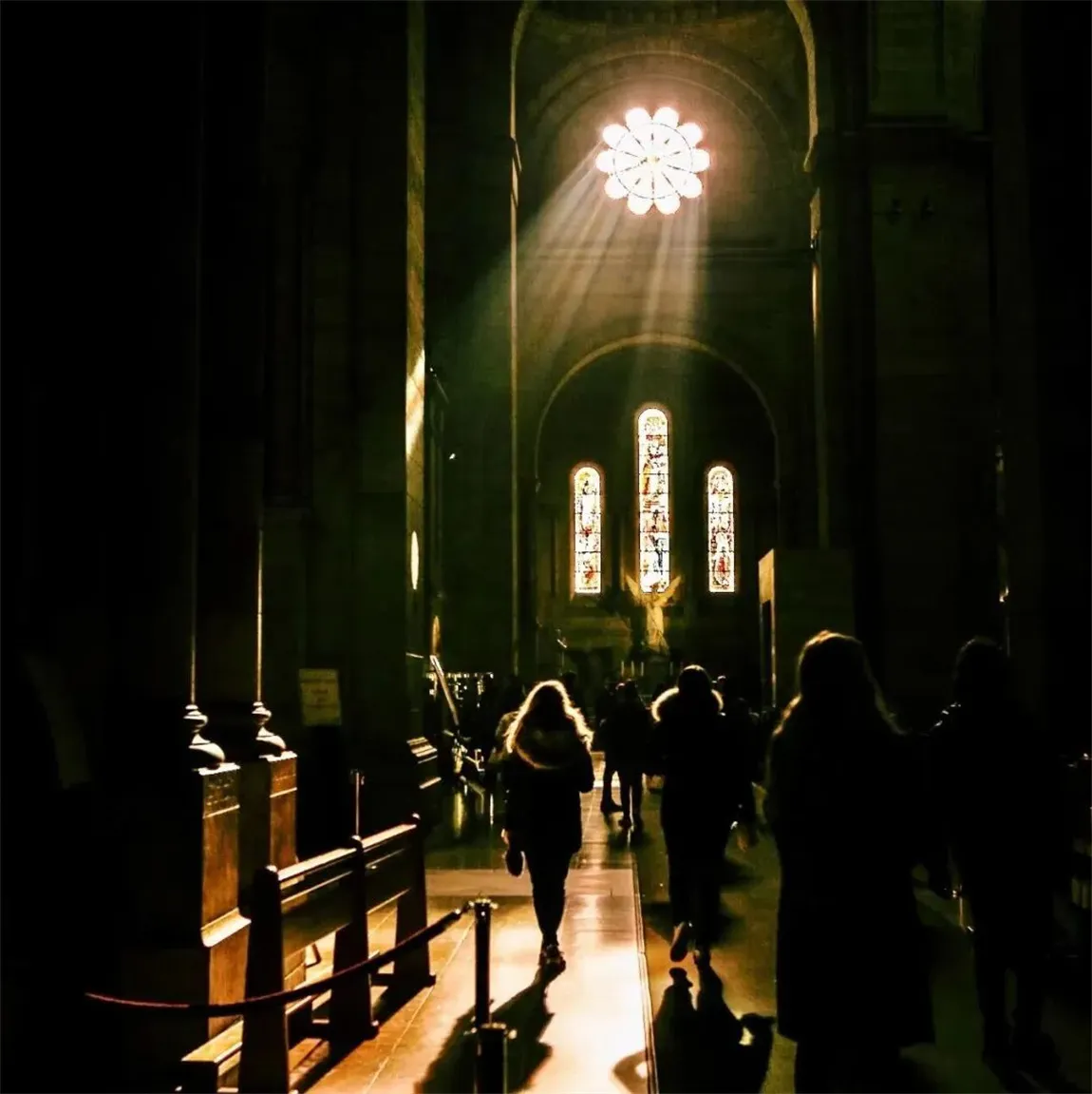 作品介绍:透过法国巴黎圣心大教堂彩绘玻璃花窗洒下来的一束光。