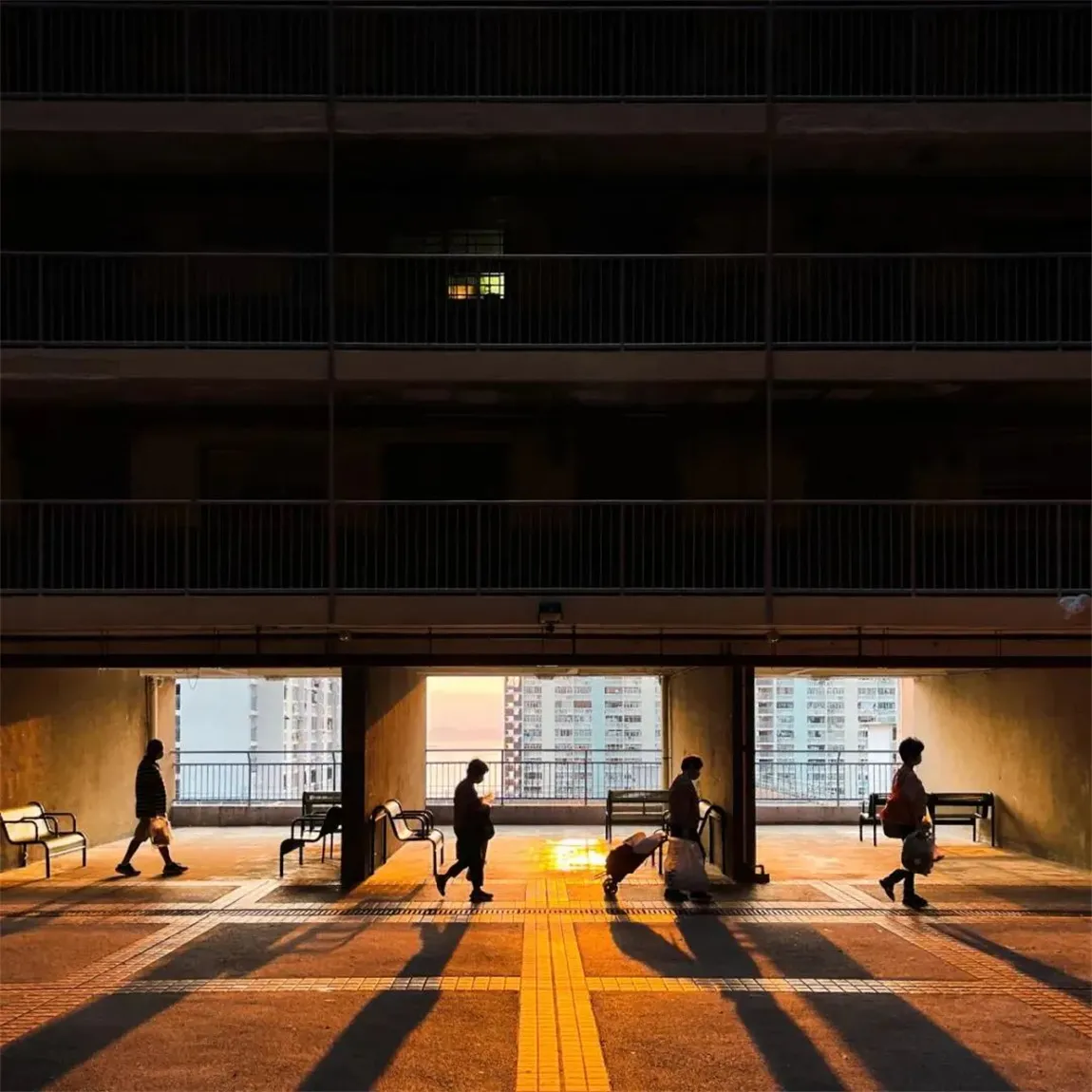 作品介绍:华富邨被誉为“香港最美公屋”。当夕阳斜射时,阳光洒满整个公屋底层的公共空间,也陪伴居民们走向回家之路。