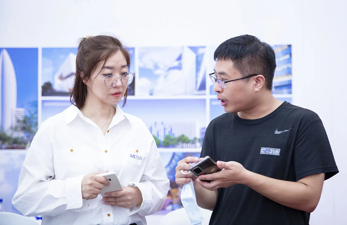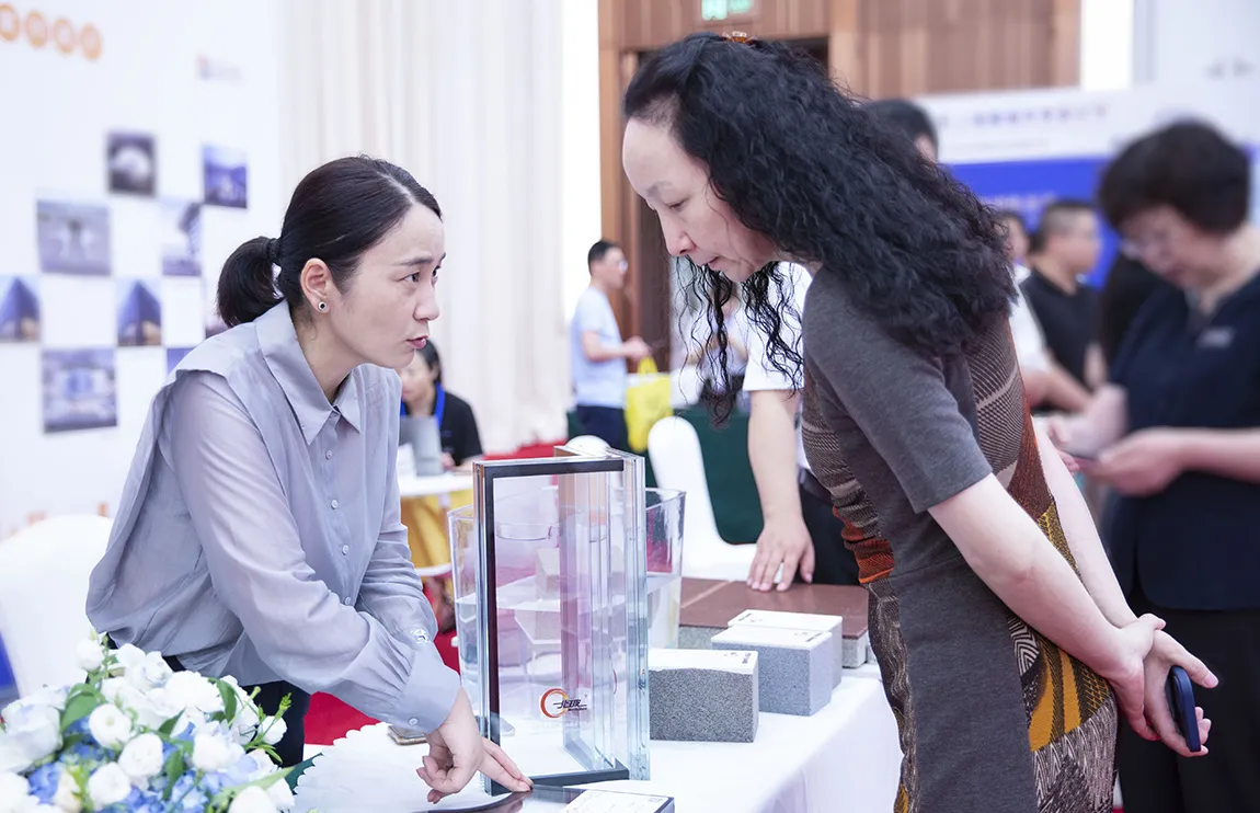展示交流现场,北玻展示的无立柱转角玻璃,打破传统的转角玻璃连接方式,视野360度无遮挡,给现场领导、专家、业界代表带来了全新体验。北玻轻晶石也备受青睐,各行业专家、企业代表与北玻相关人员进行了深入探讨,对其产品性能和创新思维给予了高度的评价。