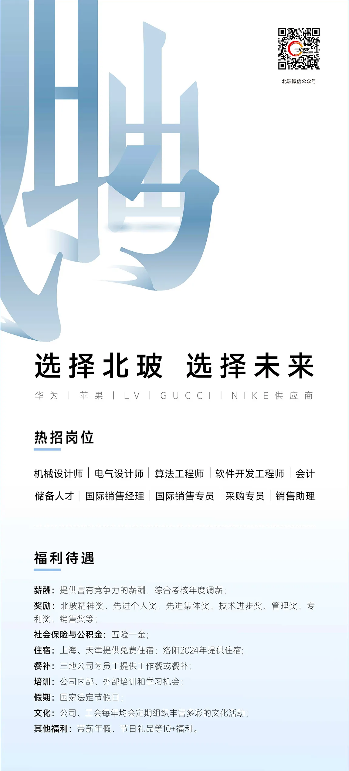 招聘岗位:算法工程师、软件开发工程师、机械设计师、电气设计师、会计、专职安全员…令员工自豪、让政府骄傲、为祖国争光的北玻,职等你来!