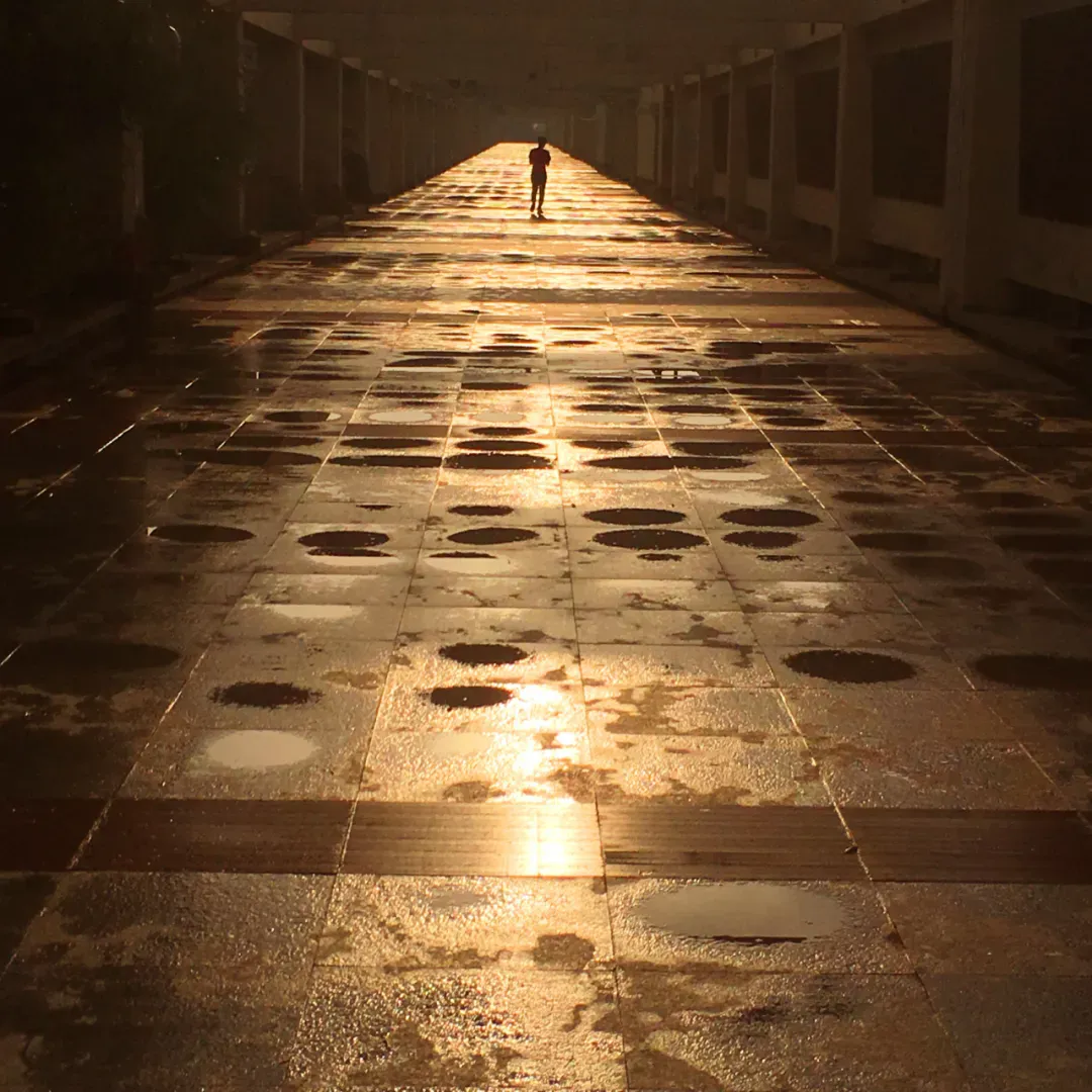 作品介绍:从停车楼的两个环形坡道向下望去,光影从侧面逐渐晕开,结构于此奏响了建筑的乐章。