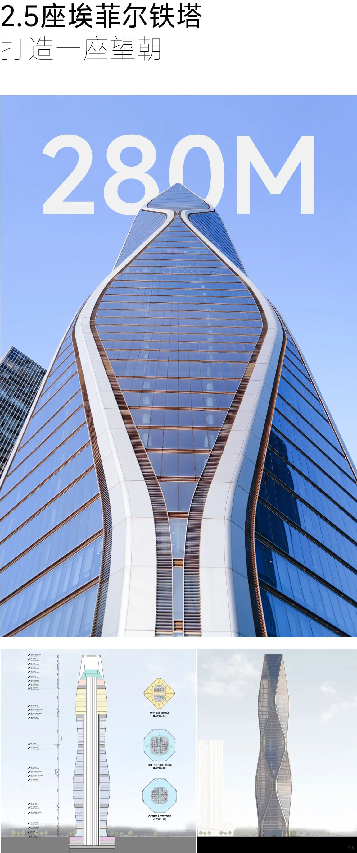 作为杭州钱江世纪城核心地带的标志性建筑,望朝中心因其独特的起伏轮廓展现了现代建筑的卓越风范。这座12.5万平方米、288米高的建筑,将结构效率、可持续性和针对各种复杂挑战的应对能力集中体现在一个流线型设计中,并以其精湛的施工工艺和优质的选材而备受瞩目。