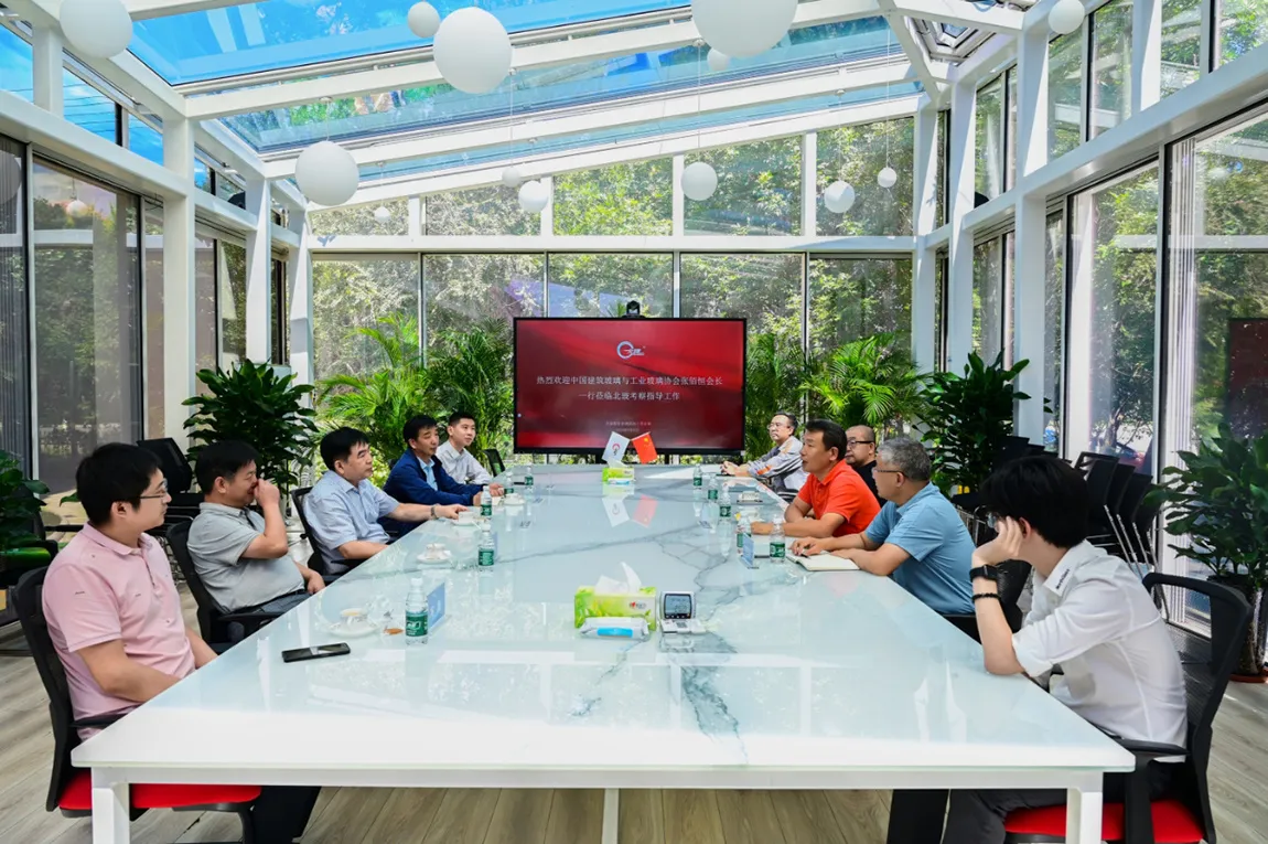 近日,中国建筑玻璃与工业玻璃协会会长张佰恒、秘书长李会一行来到天津北玻走访调研,北玻股份副总裁、玻璃深加工事业部总经理高琦热情接待了会长一行。