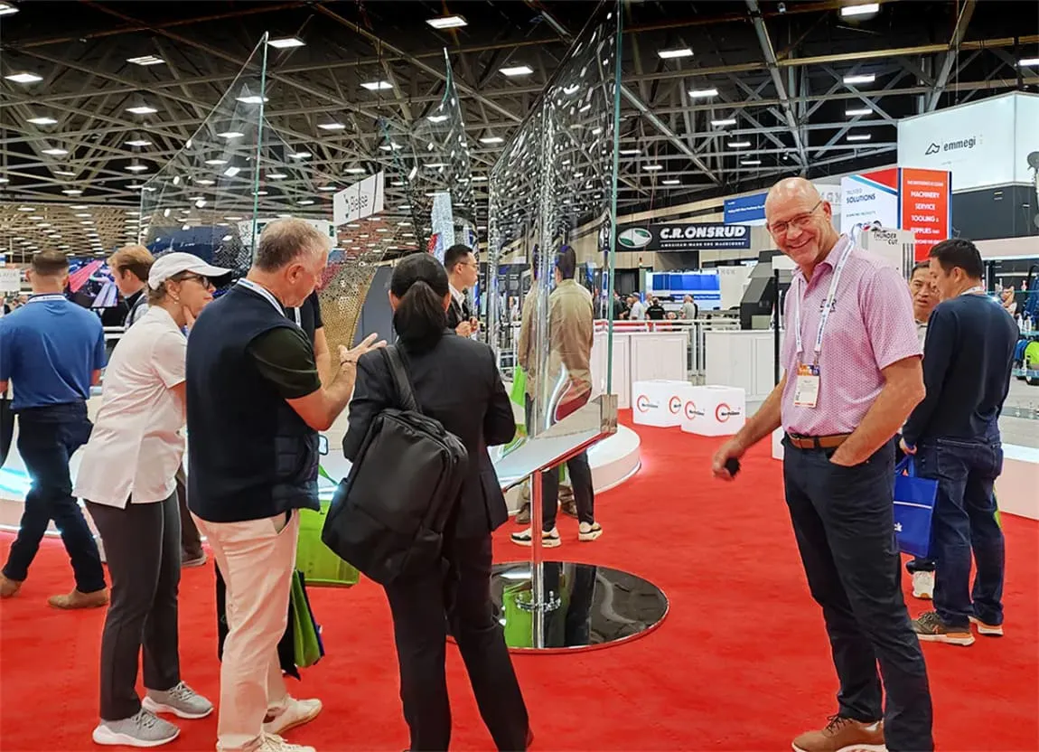 2019年,北玻股份以一款8米超大弯弧夹胶钢化玻璃震撼全场,获得Best in Show奖项。时隔5年,凭借 “北玻之花”再次折魁,这款展品采用多曲面夹层钢化玻璃并覆上彩釉及镜面膜,独特的设计和精湛的工艺吸引了众多专业观众的目光。