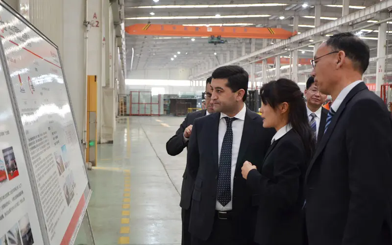2017年11月8日,乌兹别克斯坦新任驻华大使巴赫季约尔·赛义多夫一行三人在洛阳市自贸区外事办工作人员陪同下,莅临北玻股份洛阳基地参观学习、交流技术经验,为提升本国的玻璃深加工技术实力打下基础。