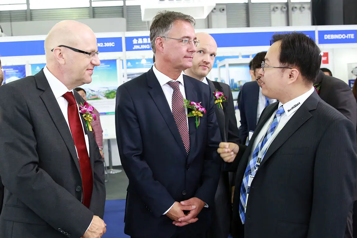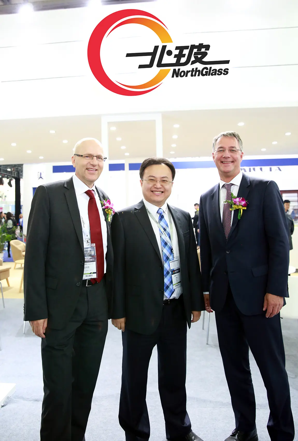 北玻股份玻璃板块天津玻璃公司、上海玻璃公司、洛阳玻璃公司、北京玻璃公司由北玻股份总裁高理先生带队,参加了本次行业盛会。开幕*天,德国国务秘书Adler、上海市住房和城乡建设管理委员会副巡视员朱剑豪、欧洲门窗协会会长Hauk先生及夫人以及德国慕尼黑集团Peputy CEO Dr.Reinhard Pfeiffer等组成的庞大代表团来到北玻展台,高理总裁接待并详细介绍了公司和此次参展展品的情况,尤其是北玻为幕墙市场带来的超大钢化玻璃产品和幕墙设计的创新空间,得到代表团由衷的赞叹。