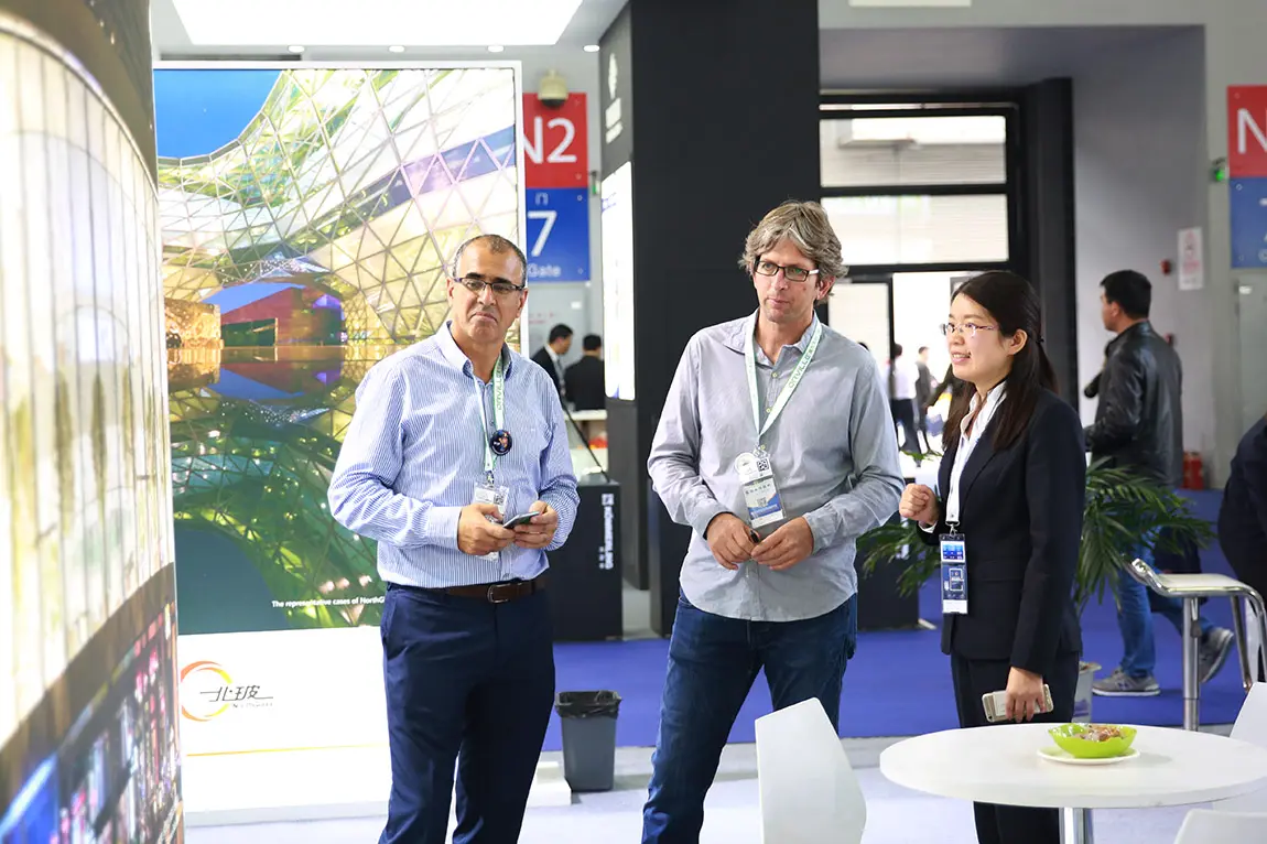 四天的展期,北玻的展台不仅吸引来了RFR公司、华润置业、龙湖地产、朗诗地产等知名业主还有中国建筑金属结构协会、上海市建筑学会、苏州房地产行业协会、华东建筑设计研究总院、同济大学建筑设计研究院等协会和知名设计单位,现场案例更是给观众带来了极大震撼,用RFR公司负责人的话说:“北玻真是敢想敢干!”,18米的超大平、弯钢化玻璃,8米弧长的超大弯钢化玻璃,让这些业主啧啧咂舌。当初让北玻决心要生产8000mm(弧长)x 4000mm钢化玻璃的原因,就是设计师无意中对超大弯钢化玻璃表现出来的渴求。说者无心,听者有意,只要能满足设计师的“想象”,只要能满足业主的体验,北玻就敢做出来。从自行研发新设备到最终的玻璃产品,北玻用技术引导市场,让设计师具有更大的创作空间。
