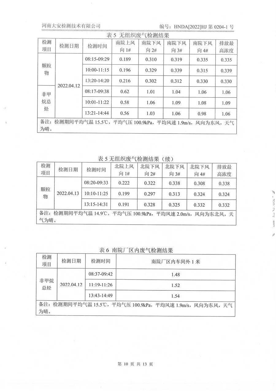 2022年检测报告
