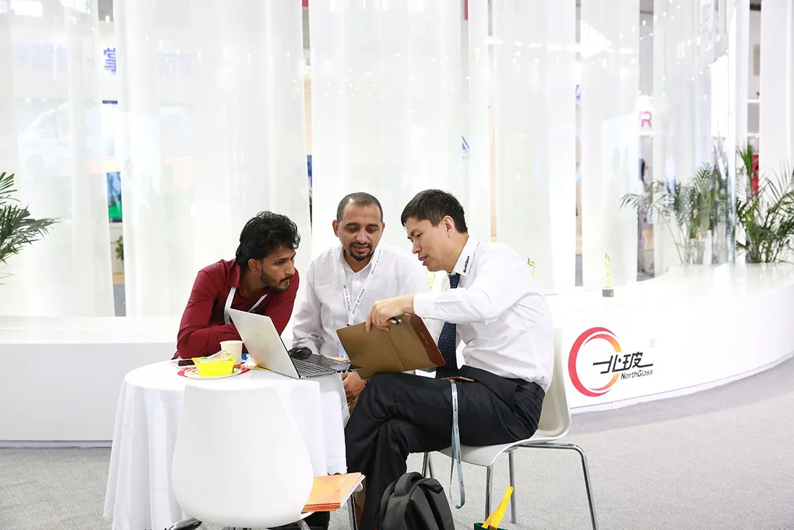 北玻展位上精致的展品展示,配以纯白的整体色调,凸显了北玻高端的品牌形象,也吸引了来自德国、美国、俄罗斯、英国、奥地利、韩国、土耳其和港澳台地区的知名代理商及客户,国内知名玻璃企业代表和参观团也是纷至沓来。据悉,北玻展台接待客户近4000人,现场签约订单2000余万元。