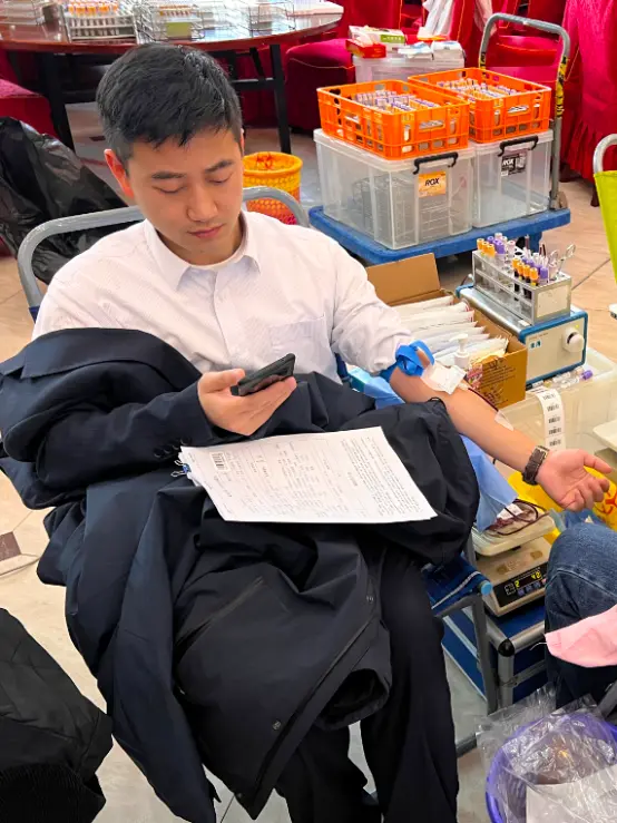 2023年12月6日,无偿献血活动当天,各部门报名人员于公司集合,统一乘车前往小昆山镇平复苑社区党群服务站。共有24名员工报名献血,成功献血18人,献血量达到4000毫升。这不仅仅是数字,而是一股股充满爱心的热血谱写的生命延续之歌。