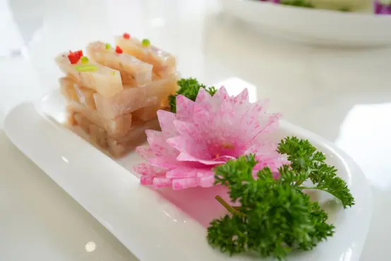 四名参赛选手里秦飞算是“老厨师”了,1994年出生的他有着12年的从业经验,精通各种中式冷、热菜肴的烹制。自2016年加入北玻餐厅以来始终兢兢业业,认真负责。这次参赛的压轴大菜“北玻风味”的牡丹燕菜也是出自他手,这道菜一亮相就获得了现场评委和镇领导们的一致好评。