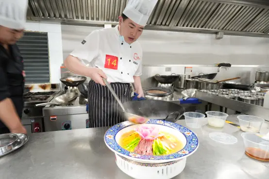 建功“十四五”奋斗新征程,2024年小昆山镇餐饮行业职工劳动和技能竞赛于5月9日下午,在小昆山九峰·味饭店举行。经过前期初赛比拼,来自九峰·味、三斗半、昆冈大院、年年有余、上海北玻餐厅的五支队伍入围冠亚季军的激烈角逐。小昆山镇总工会、小昆山市场监督管理所、小昆山旅游发展有限公司等相关领导出席,观摩比赛,为参赛厨师们加油鼓劲。