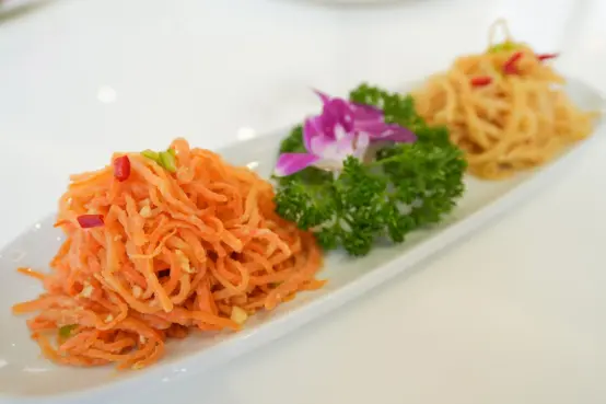北玻作为这次比赛唯一一家企业餐厅受邀参赛,交流技艺,共同竞技。北玻大厨们更是十八般武艺全用上,无论是雕工,摆盘以及口感,一点也不亚于商业饭店的专业度,看来每天公司几百号员工的的饮食确实练就了过硬的烹饪基本功。