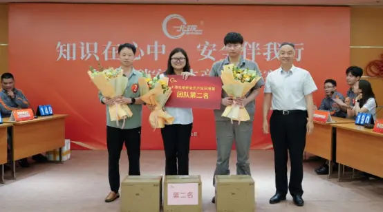 赛场上各参赛队员你来我往,观众席也热闹异常。与观众的互动问答、抢答环节更是充分调动了现场的气氛,让员工在观看比赛的同时也深入思考安全生产的意义。