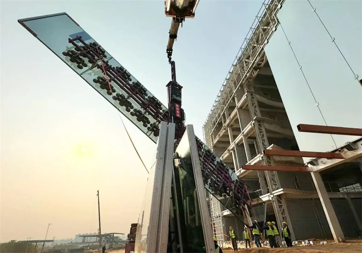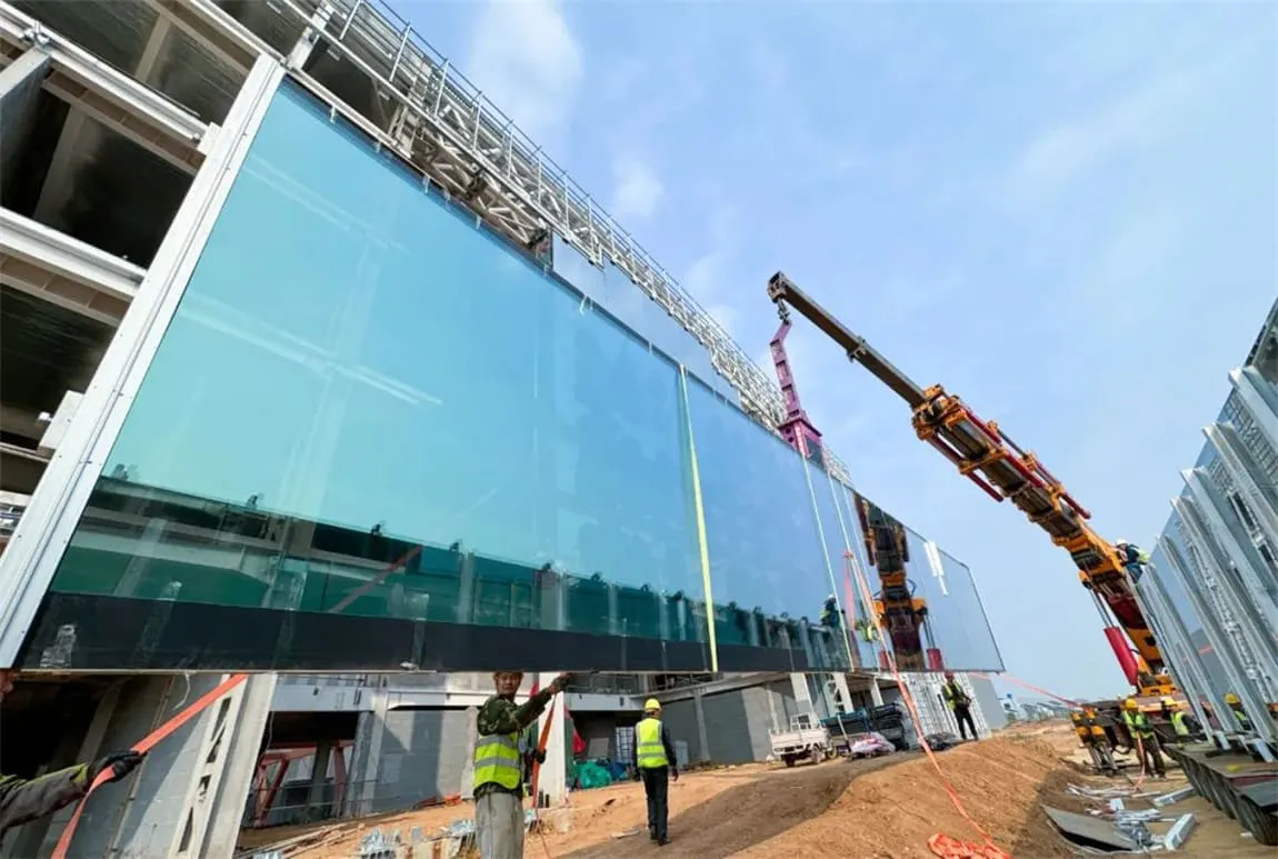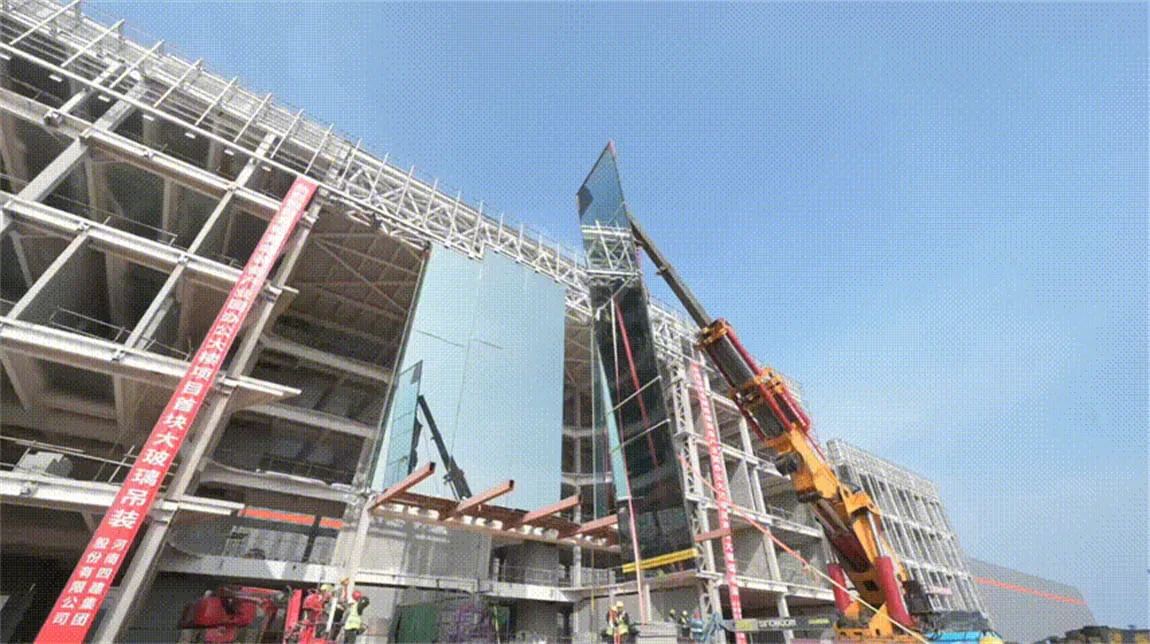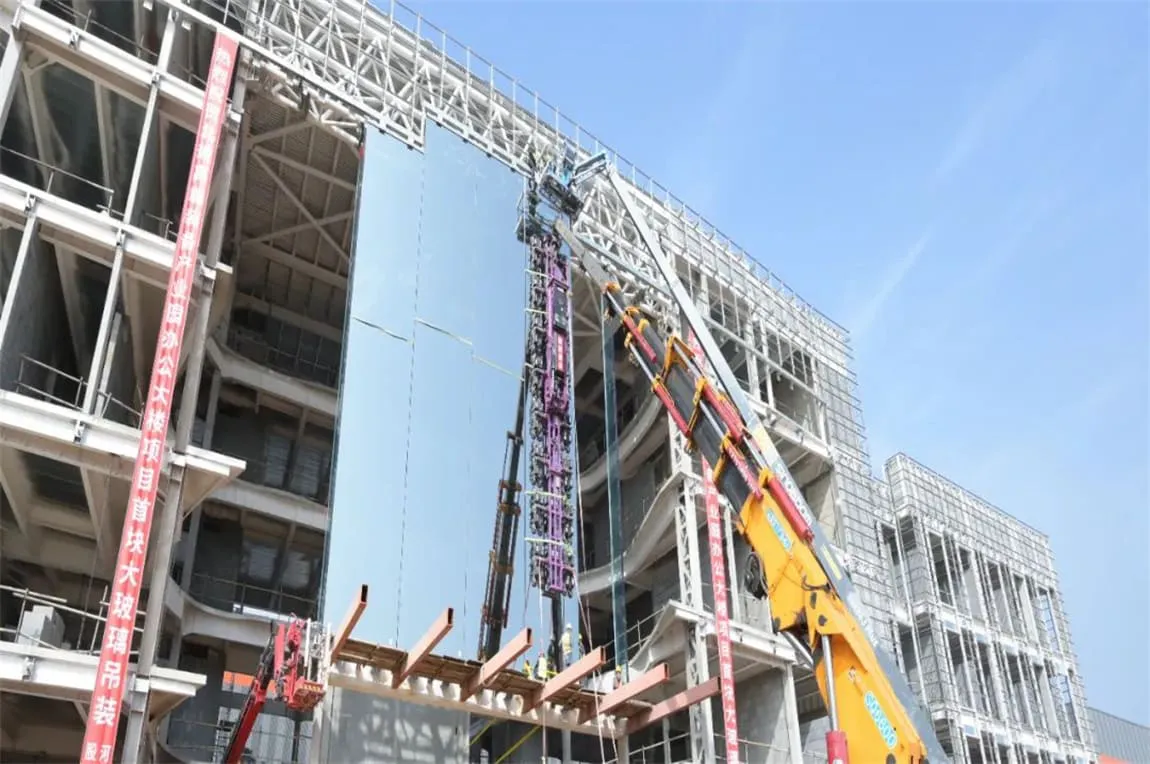 北玻研发中心首块18.3米“超级玻璃”幕墙顺利安装