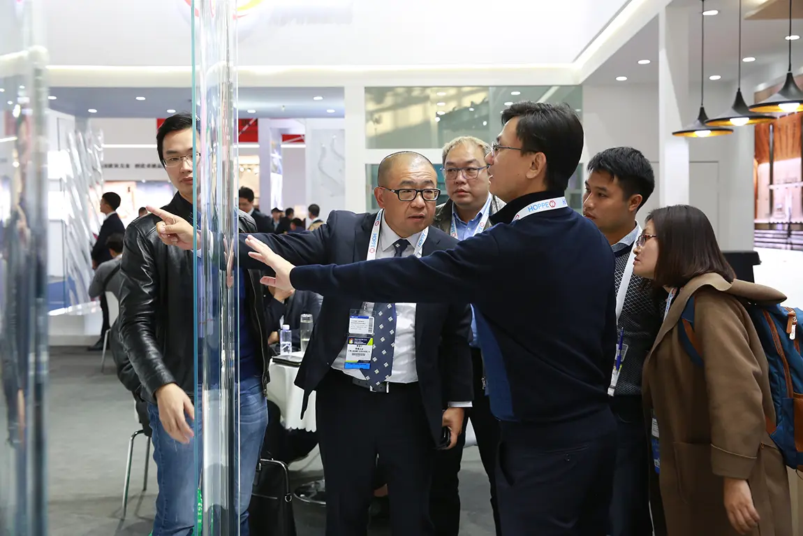 开幕*天,中国建筑金属结构协会郝际平会长一行来到北玻展台,北玻股份总裁高理接待并详细介绍了公司和此次参展展品的情况,特别介绍了北玻自主研发的8米超大弧长弯钢化玻璃。郝际平高度赞扬了北玻玻璃产品差异化的发展路线,并感谢了北玻为同期举办的《中国大陆、台湾、香港建筑幕墙技术发展研讨会》筹备所做的工作。