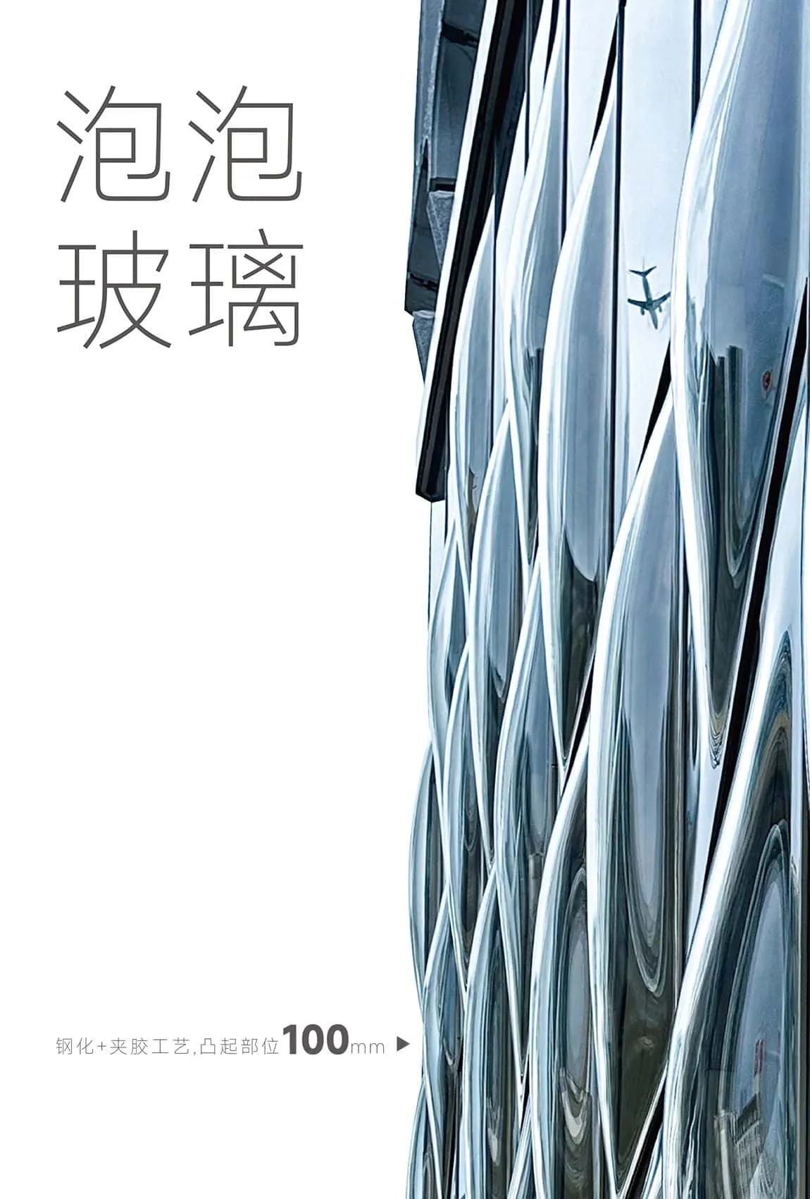 “泡泡”玻璃采用特殊的夹胶钢化工艺,实现了局部100mm的凸起设计,突破了传统玻璃的制造局限。目前,该技术已成功应用于日本PPY项目、上海耐克001项目等多个国际知名项目。