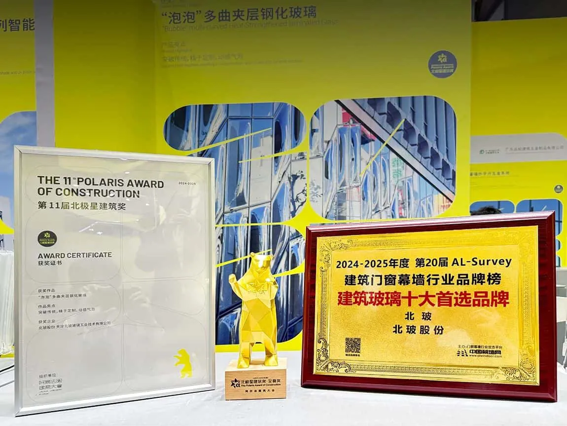 3月10日晚,在第十一届北极星建筑奖颁奖典礼上,北玻凭借“泡泡”多曲夹层钢化玻璃技术,从众多参评项目中脱颖而出,荣膺大奖。