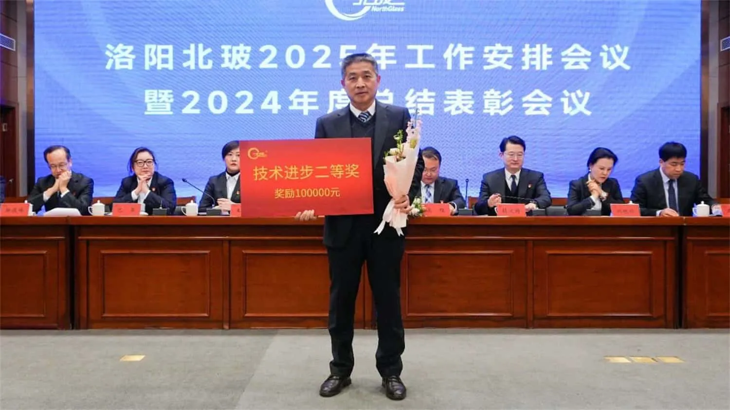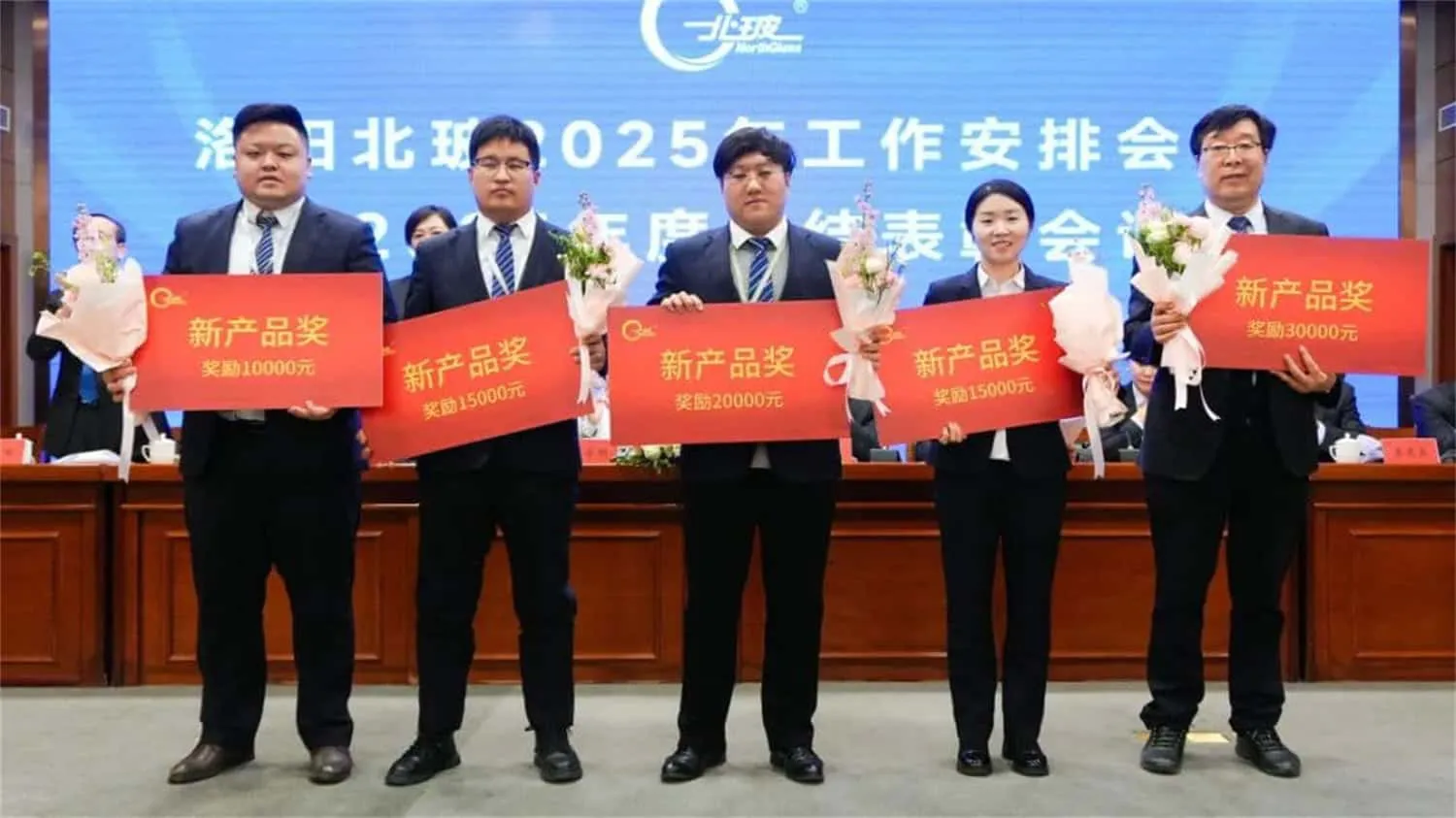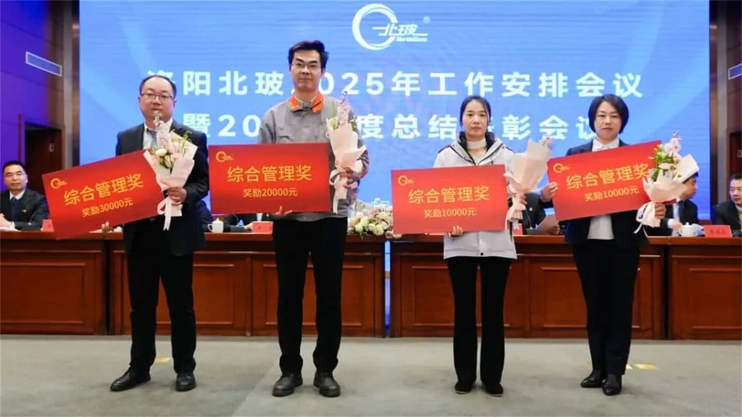 总结表彰会议上,北玻股份对上海设备制造事业部、钢化设备事业部两个业绩模范单位进行主要嘉奖,对其在年度目标超额达成、经营业绩显著提升等方面作出的成绩给予高度认可。大会同时授予苗同也、刘洋等9人"北玻精神奖",并评选出19个先进集体及155名先进员工。此次表彰既彰显了公司对发展新系列突破业绩的激励导向,更通过树立典型全面展现了全体北玻人锐意进取、奋楫争先的拼搏风貌。