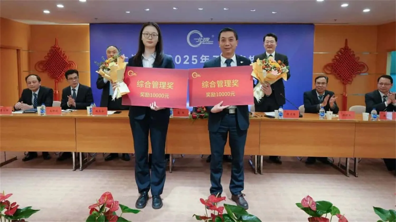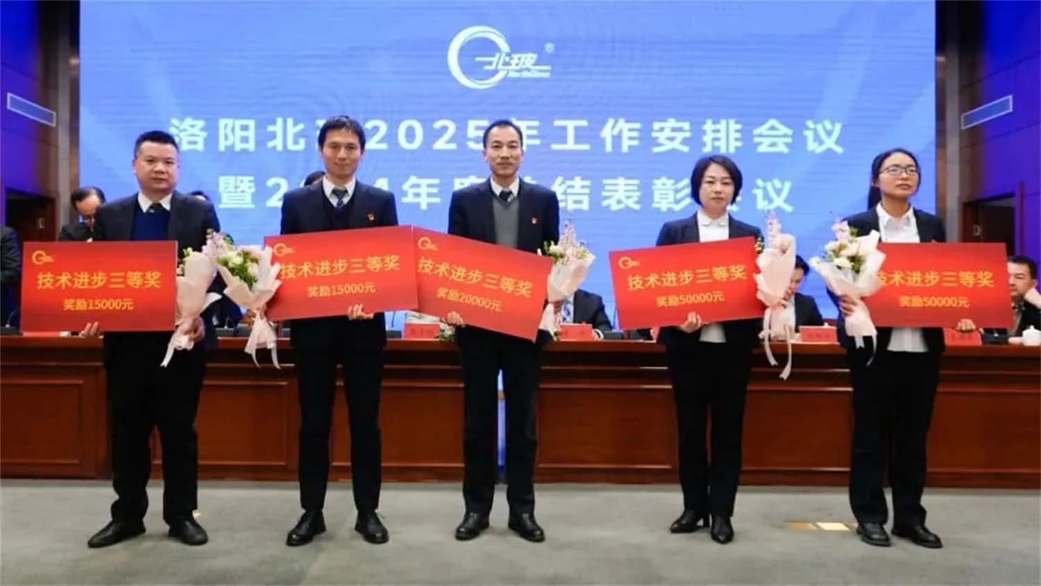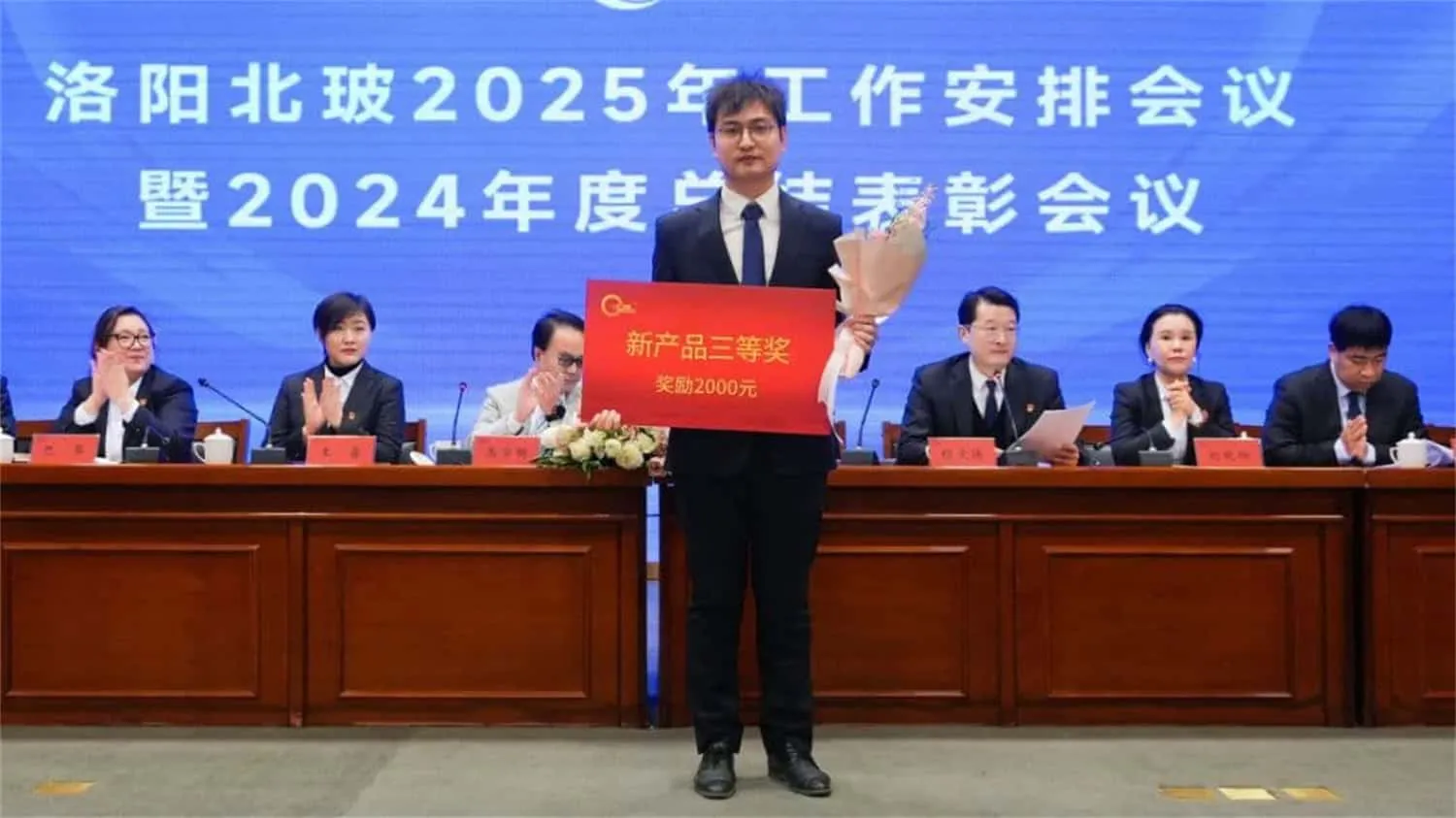 总结表彰会议上,北玻股份对上海设备制造事业部、钢化设备事业部两个业绩模范单位进行主要嘉奖,对其在年度目标超额达成、经营业绩显著提升等方面作出的成绩给予高度认可。大会同时授予苗同也、刘洋等9人"北玻精神奖",并评选出19个先进集体及155名先进员工。此次表彰既彰显了公司对发展新系列突破业绩的激励导向,更通过树立典型全面展现了全体北玻人锐意进取、奋楫争先的拼搏风貌。