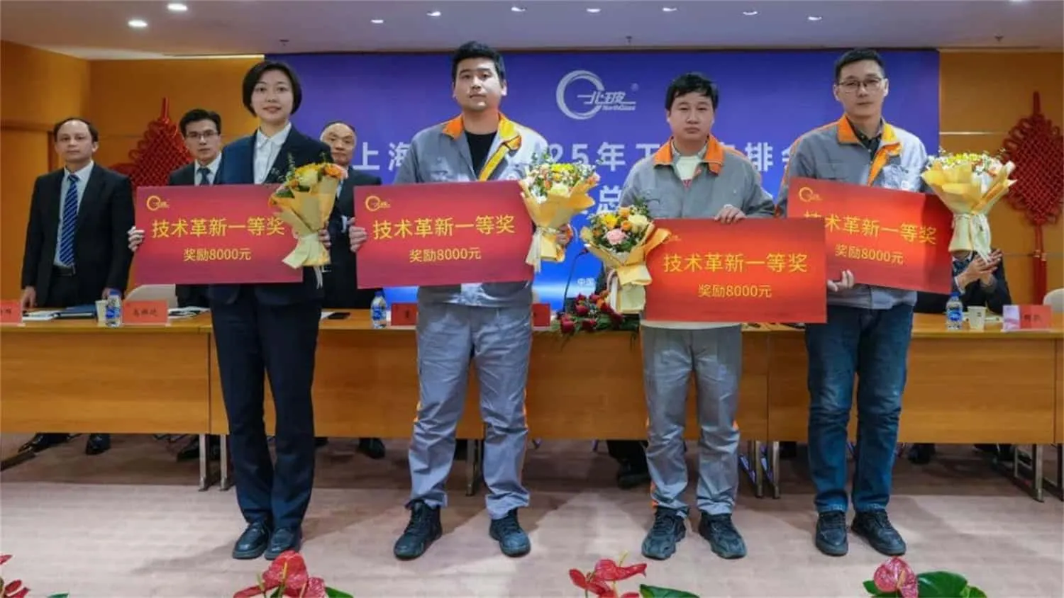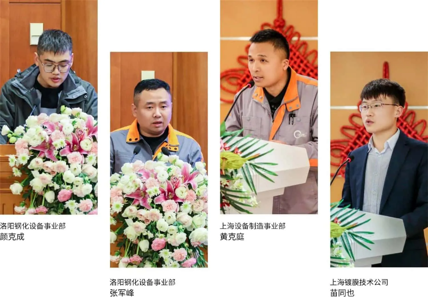 在会上,"北玻精神奖"获奖员工代表分别进行了发言,他们用自己的实际行动诠释了北玻人的拼搏精神。钢化设备事业部的颜克成、钢化设备事业部华东售后工程师张军峰、上海设备制造事业部机加工段黄克庭、上海镀膜技术公司苗同也分享了自己的工作心得和体会,展现了北玻员工的责任与担当。
