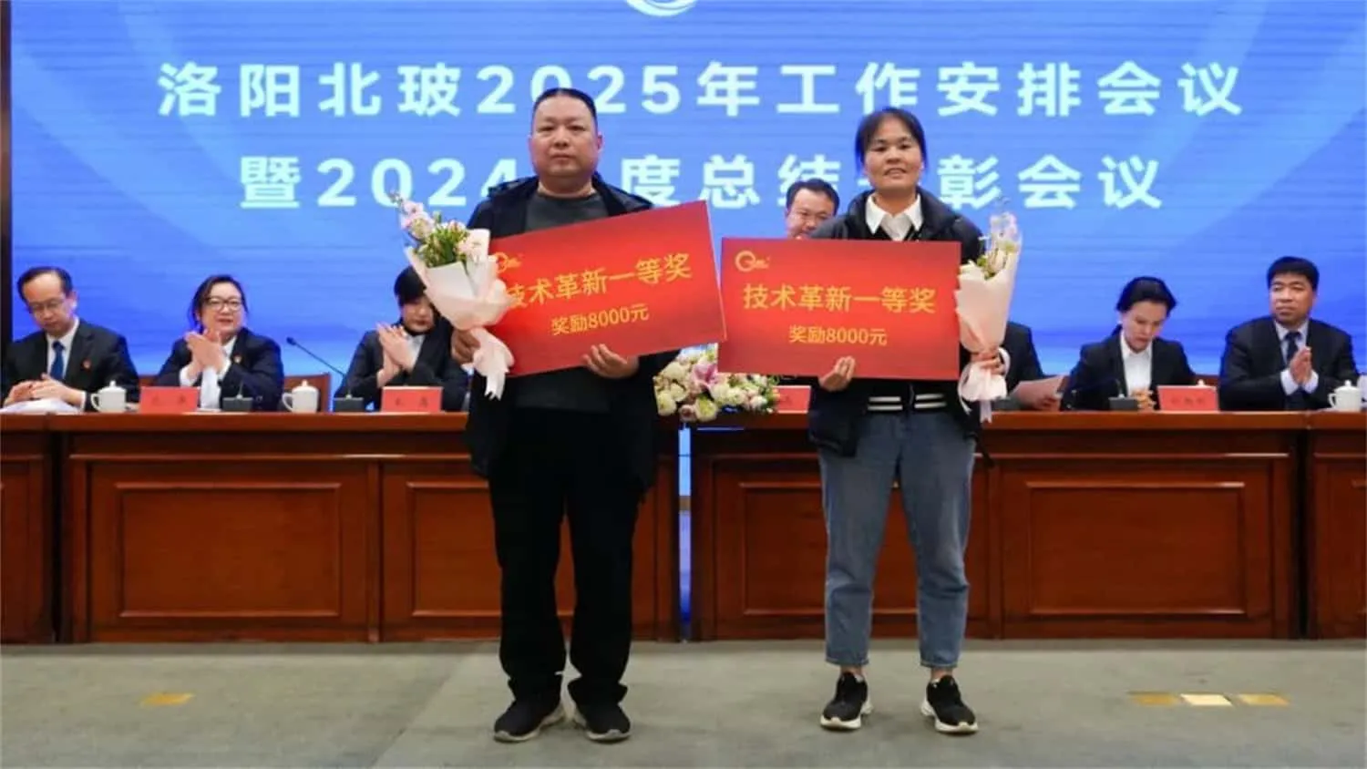 近日,北玻股份洛阳、上海各基地相继召开了2025年工作安排会议暨2024年度总结表彰大会。北玻股份董事长、北玻轻晶石公司董事长高学明先生,北玻股份副董事长、总裁高理先生,与各属地事业部总经理、部门负责人及员工代表共600余人齐聚一堂,共谋发展新篇章。