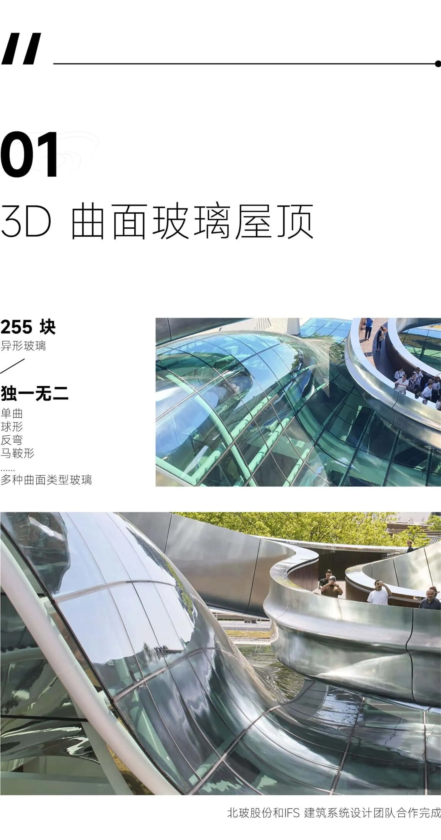 北玻股份凭借在复杂曲面玻璃加工领域的深厚积累,为项目提供了技术可靠、质量过硬的产品支持,确保每块玻璃准确匹配设计需求,并与结构系统高度契合,呈现出很好的视觉效果与物理性能。