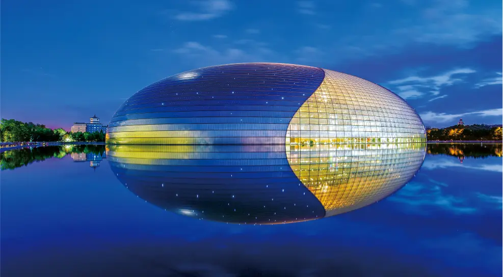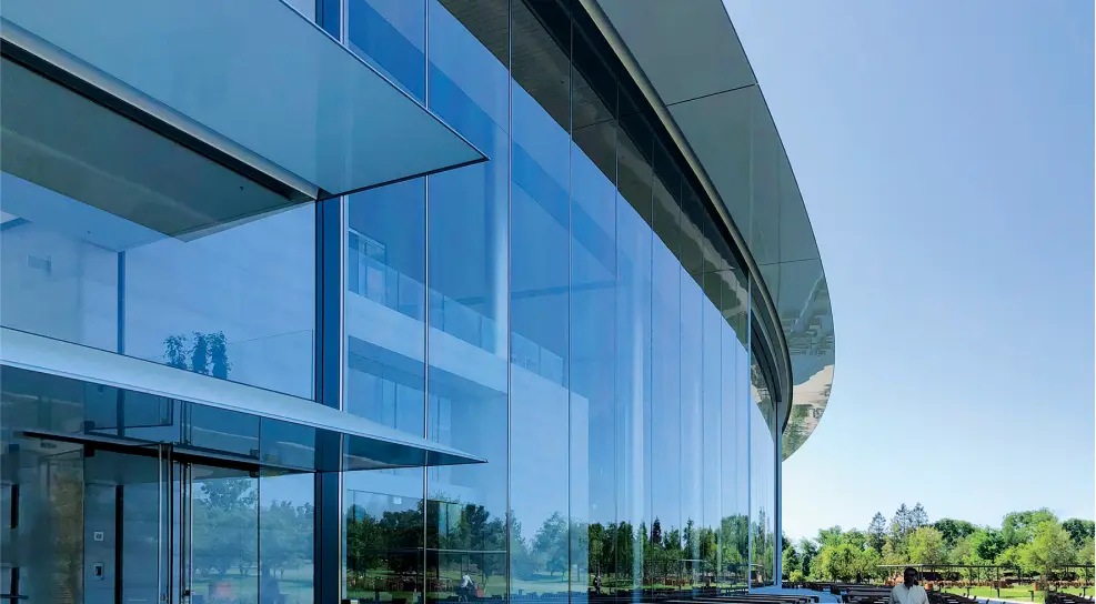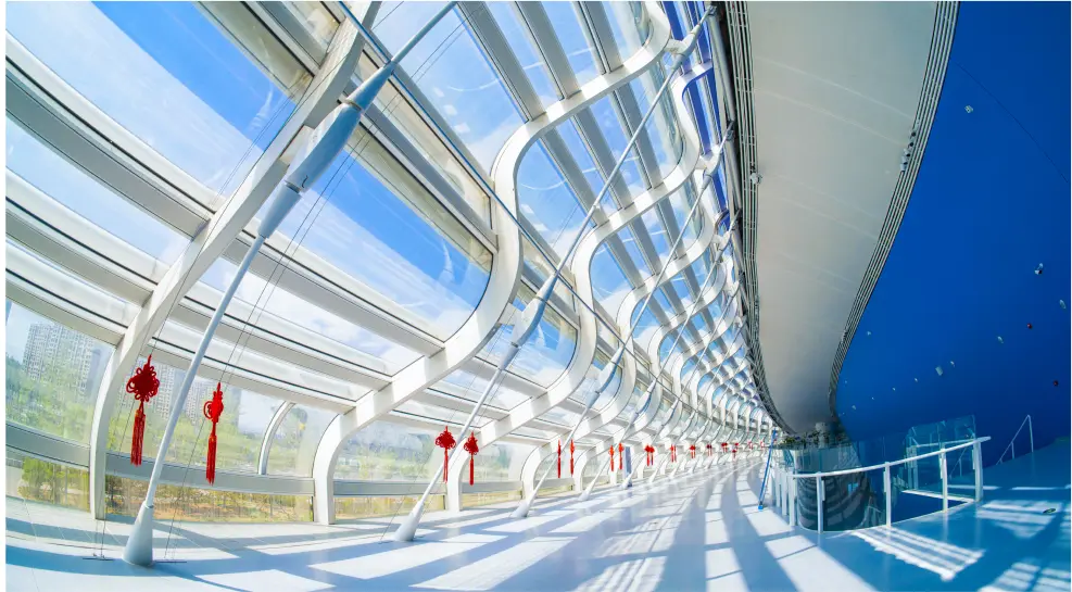 北玻的超弧长弯钢化玻璃可实现16米的弧长,无缝融合建筑轮廓与曲线,带来流畅的视觉体验,广泛应用于曲面幕墙和极具创意的建筑外立面。