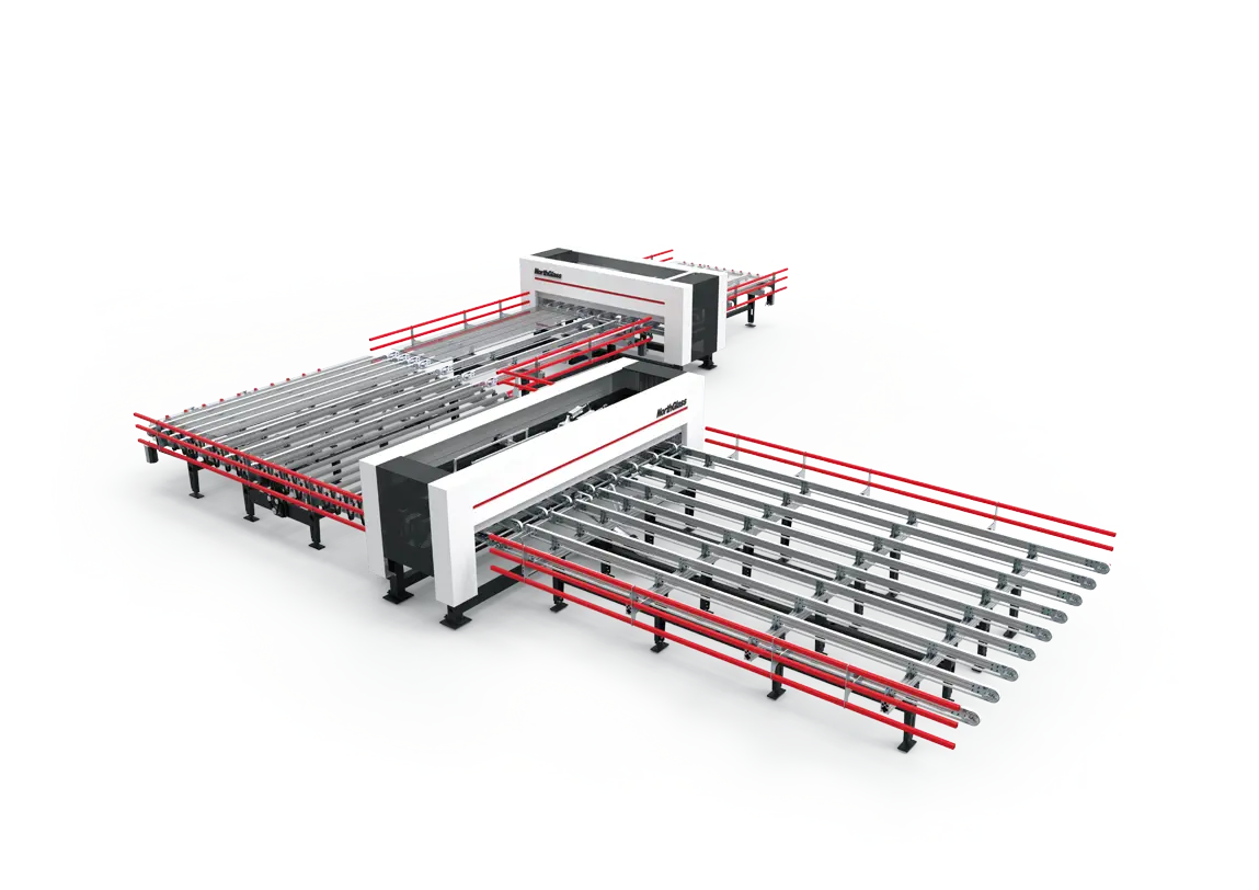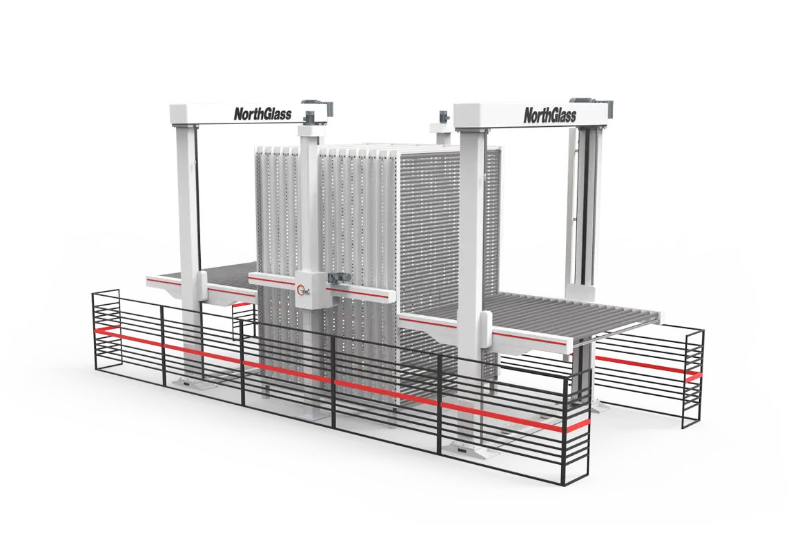功能特点:由玻璃料架、龙门架、导轨、吊具吸盘和控制系统组成。兼具批量生产且原片切割的玻璃种类需要经常切换的生产模式,最多可对接2台切割机。