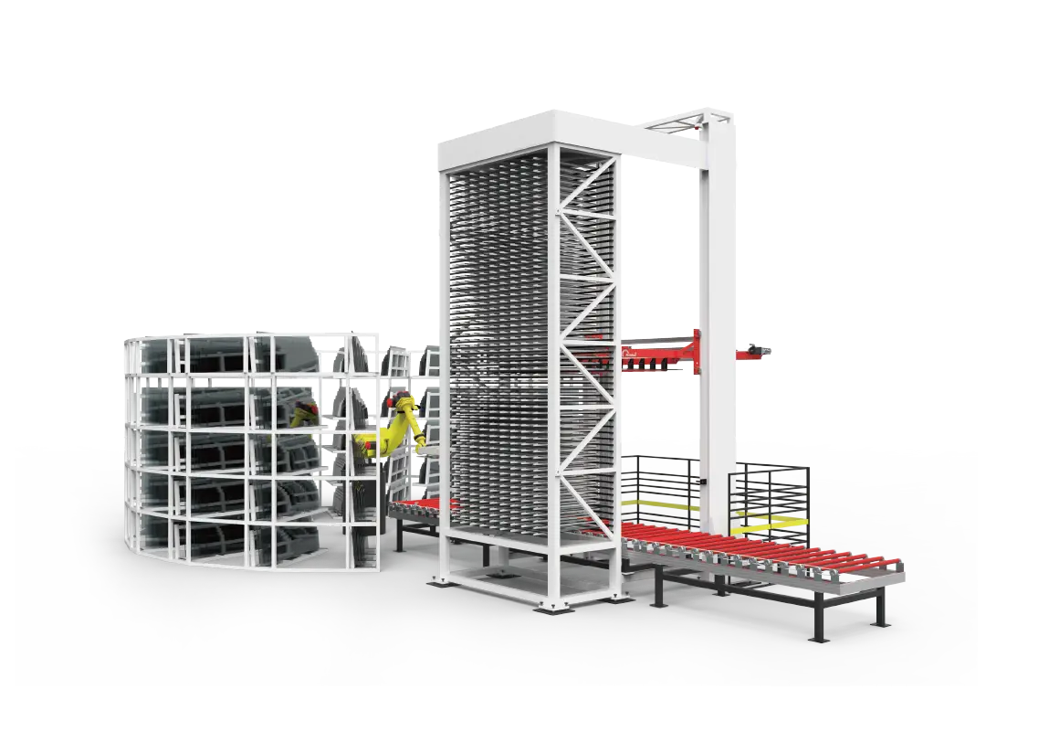 功能特点:在卧式插架机内每片玻璃可单独存取,在环形分拣机内玻璃可以分类存取。