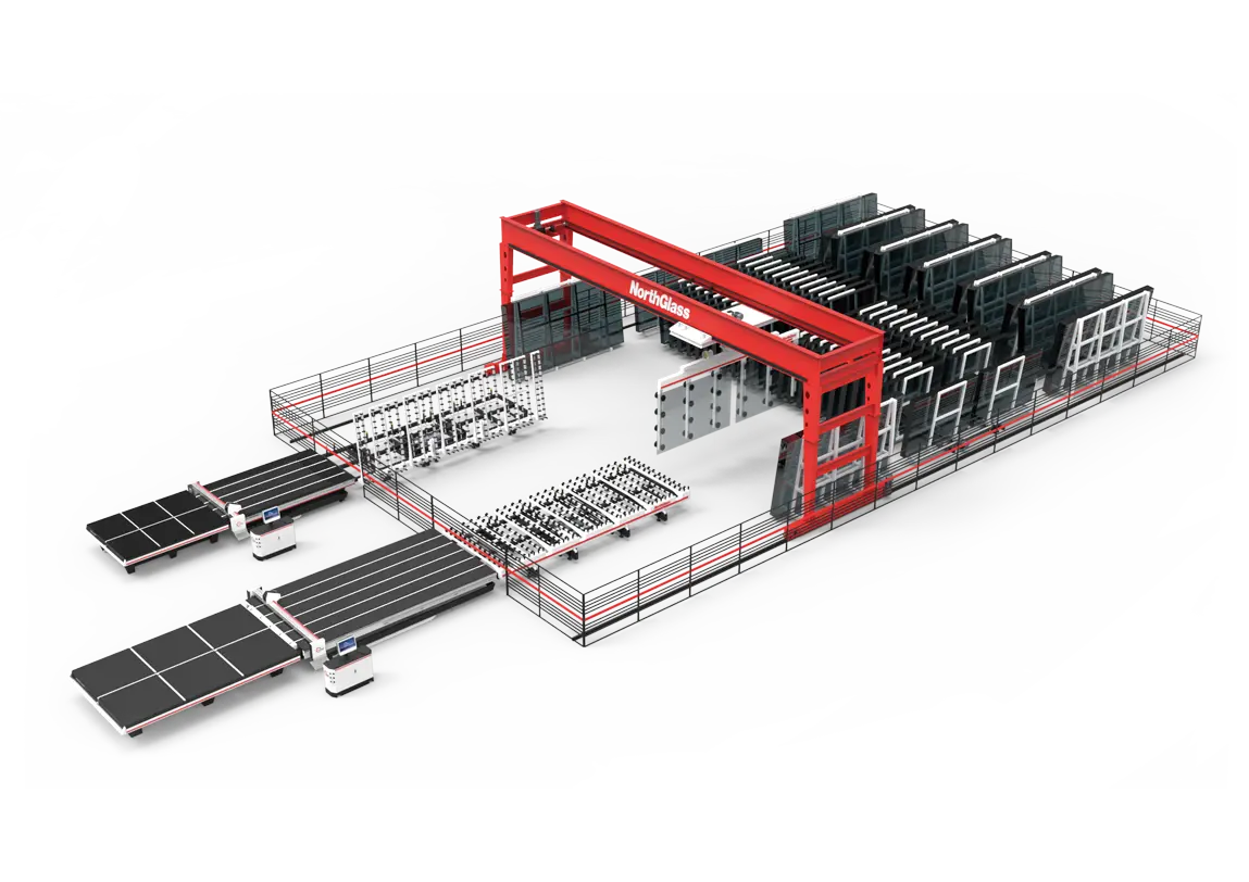 功能特点:由玻璃料架、穿梭车、轨道、吊装位、上片位和控制系统组成。适合大批量生产模式,可配合多台切割机联动作业。