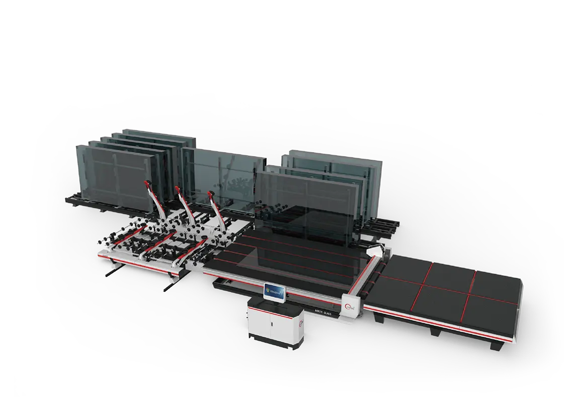 功能特点:在不牺牲钢化品质的前提下,匹配订单加工的同时,又能实现钢化前的全自动摆片及优化摆炉率。